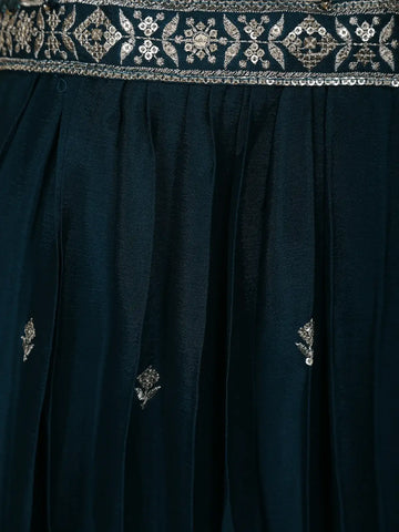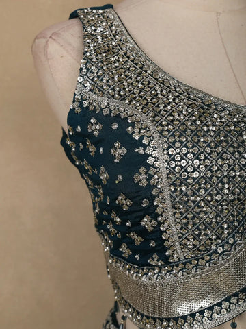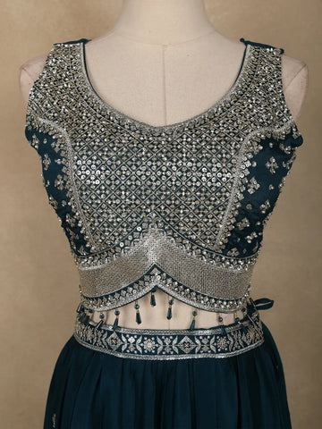 Teal Blue Floral Embroidered Design Georgette Lehenga