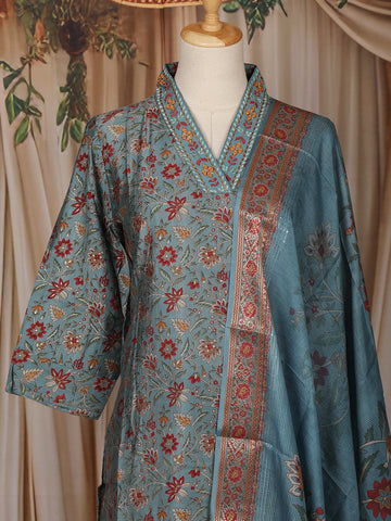 A matching printed dupatta with a coordinated border completes the ensemble, adding a hint of tradition and finesse. Perfect for office wear, casual outings, or festive day events, this salwar suit exudes an aura of calm sophistication while keeping comfort at its core.