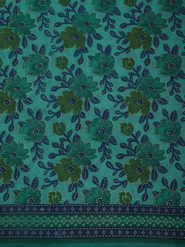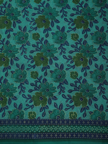Teal Blue Floral Printed Design Karishma Cotton Saree