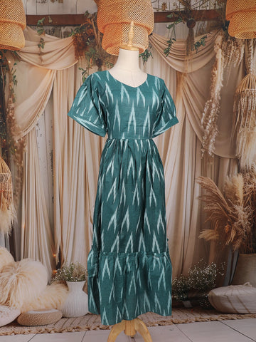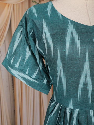 Step into breezy sophistication with this Teal Blue Ikat Printed Cotton Kurti, a perfect fusion of traditional craft and modern minimalism. Made from soft, breathable cotton, this kurti is a summer essential that combines comfort with effortless elegance.