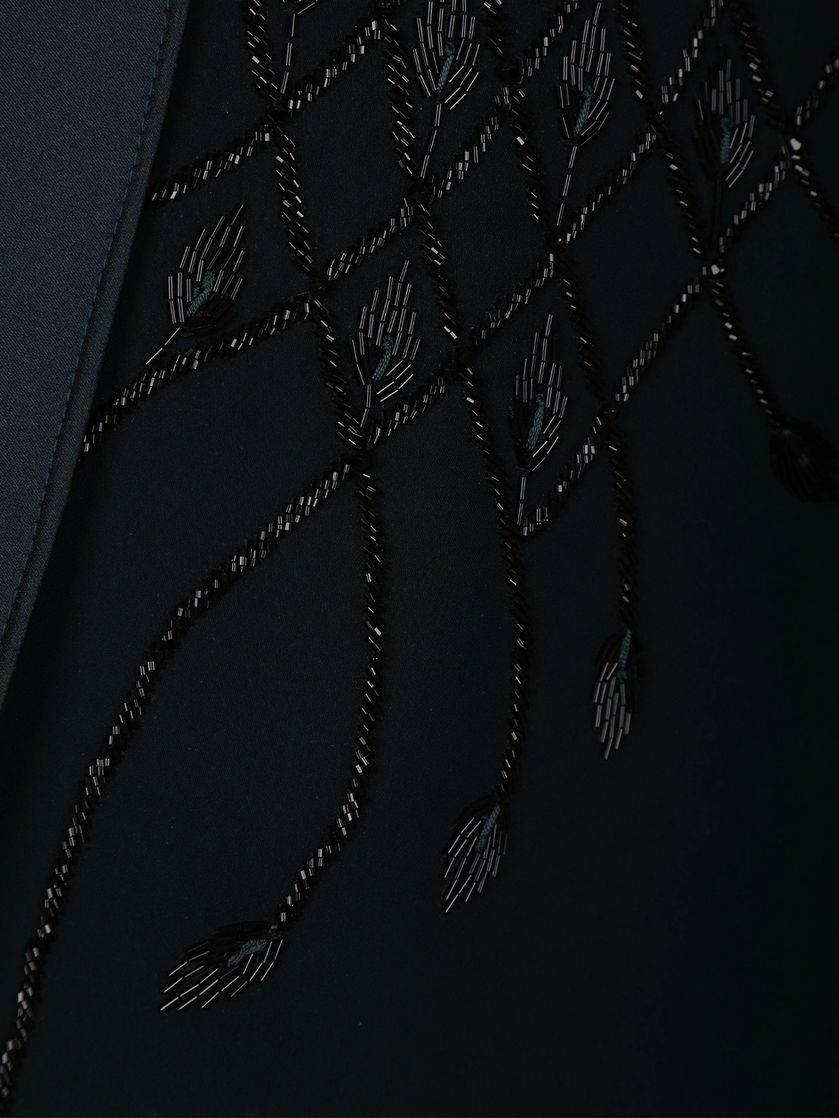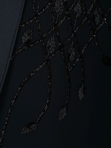 Make a powerful style statement with this teal blue polynosic men’s suit, crafted to exude modern luxury and refined elegance. The suit features intricate black bead embroidery adorning the shoulder and chest panels, designed in graceful diagonal and leaf-inspired patterns that add depth, texture, and a subtle shimmer. The tonal beadwork blends seamlessly with the rich teal blue base, creating a sophisticated monochrome effect.