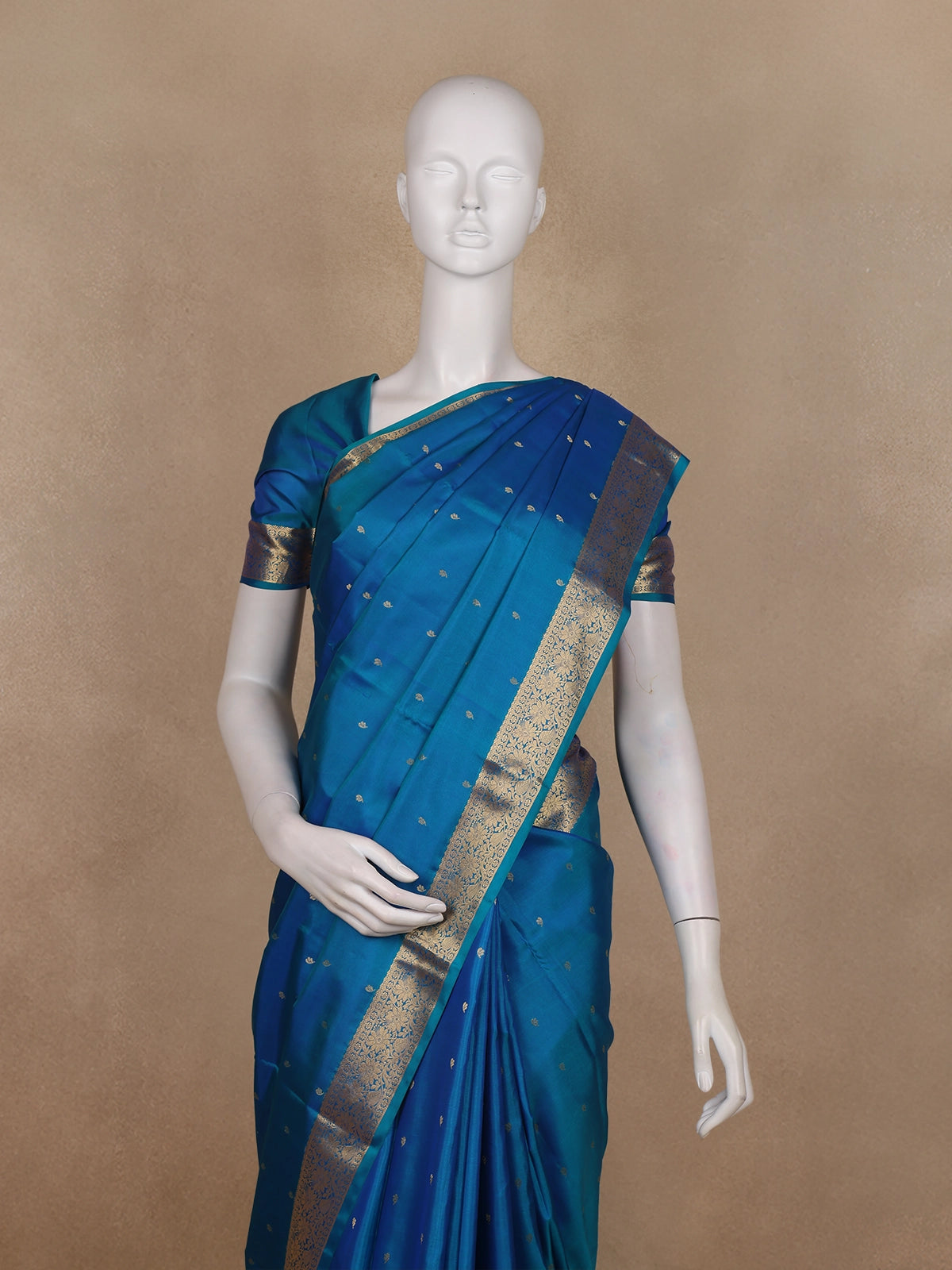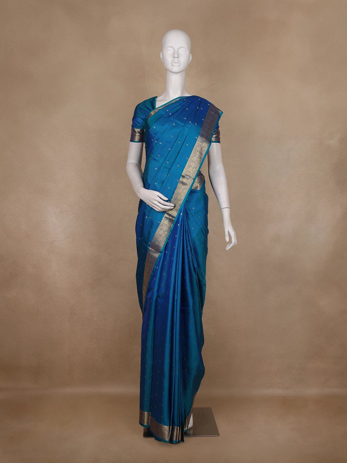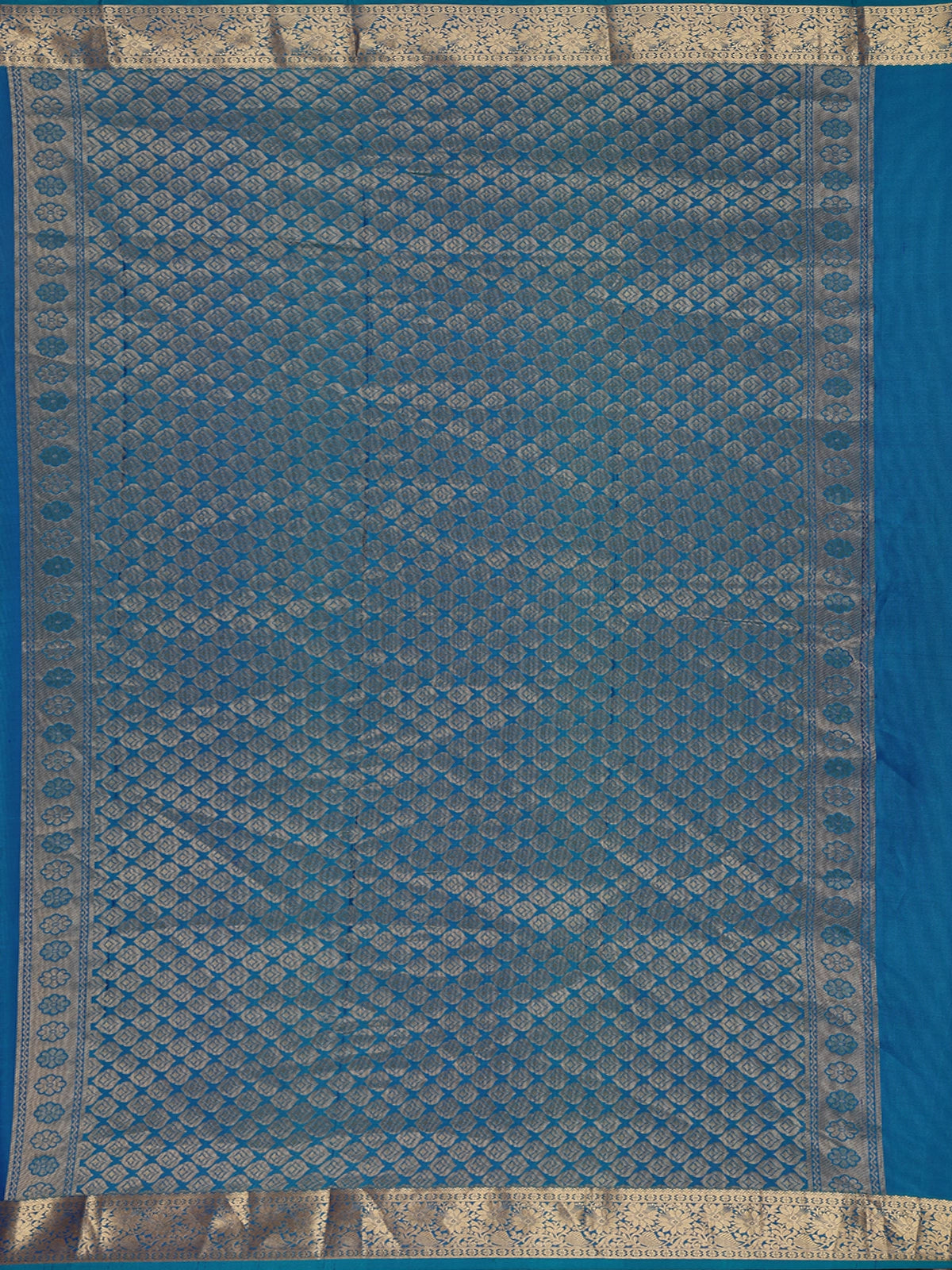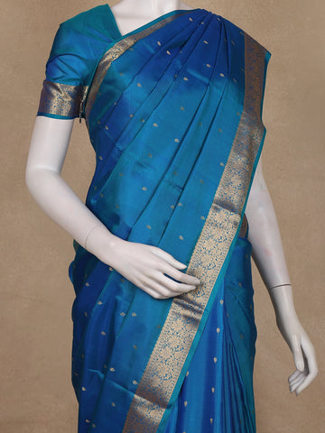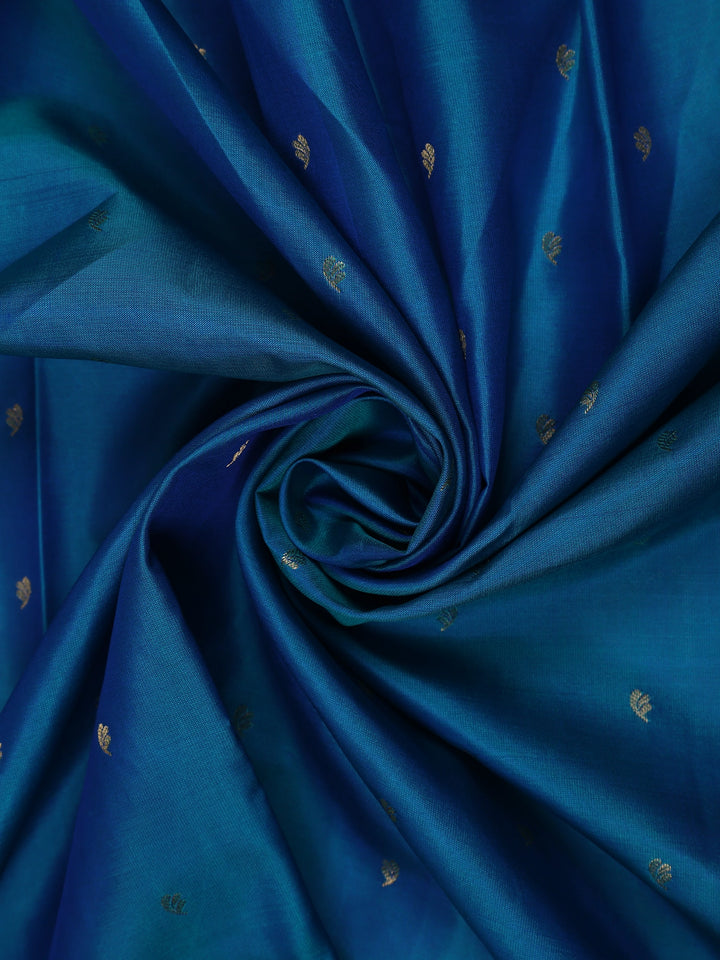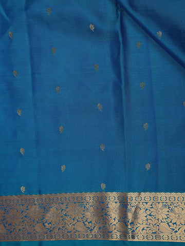 Teal Blue Small Butta Woven Kanchipuram Silk Saree with Zari Border