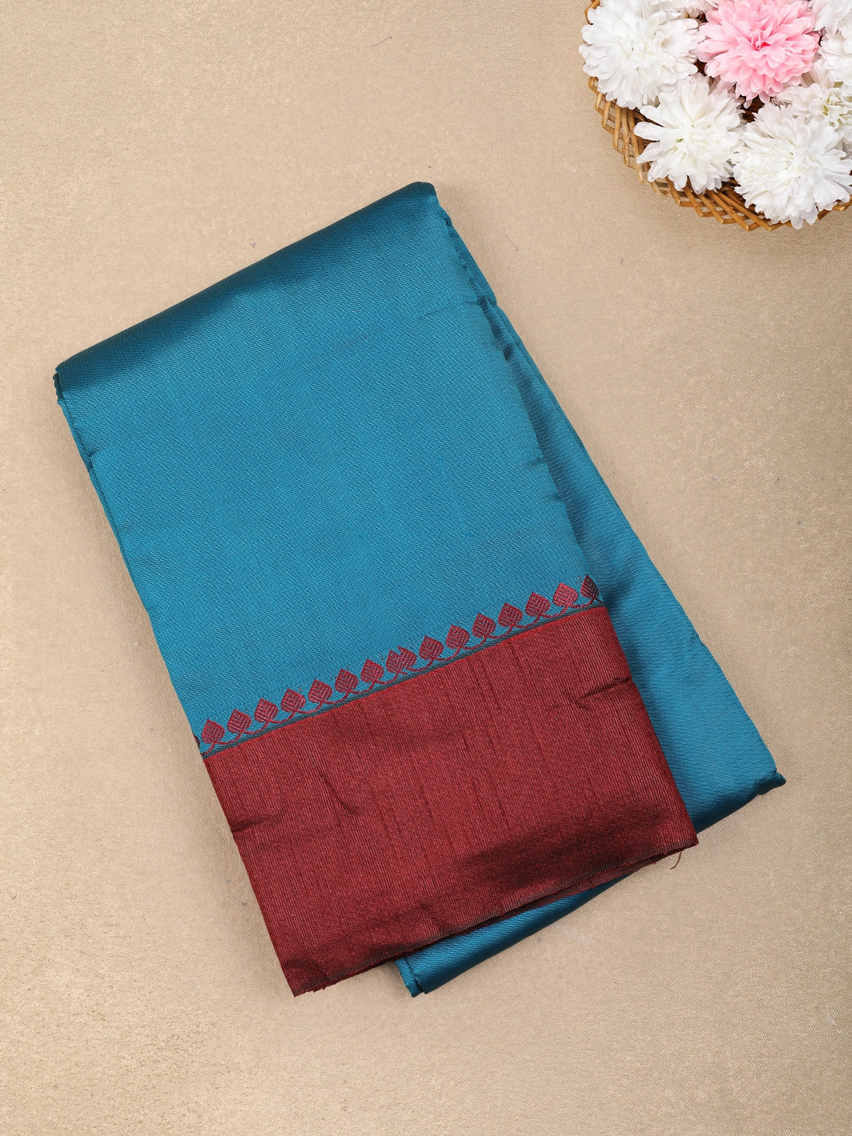 Teal Blue Solid Design Soft Silk Fancy Wear Saree with Contrast Border