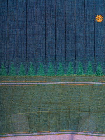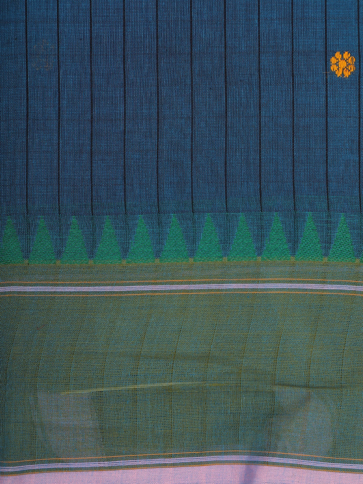 Teal Blue Stripes Design Cotton Saree with Contrast Green Border