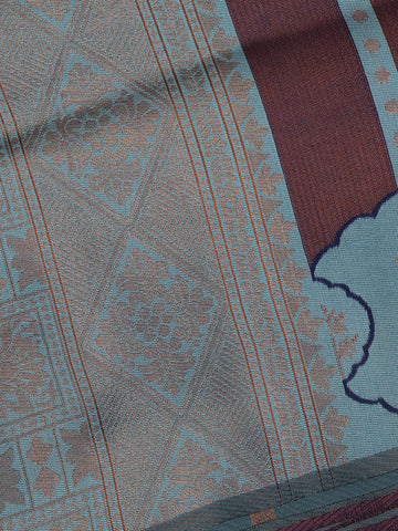Step into timeless tradition with this Maroon and Teal Blue Woven Art Silk Saree, crafted to exude heritage charm and modern poise. The saree features a deep maroon body adorned with subtle woven motifs, beautifully complemented by a teal blue zari border showcasing intricate geometric and floral designs. The smooth art silk fabric lends a rich texture and graceful fall, perfect for festive occasions, weddings, or cultural gatherings. Paired with a matching blouse piece, this saree captures an aura of elegance and regal sophistication.