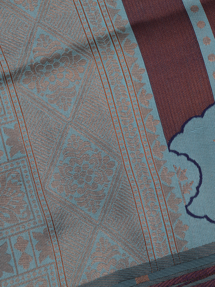 Teal Blue Woven Art Silk Saree with Geometric Zari Border