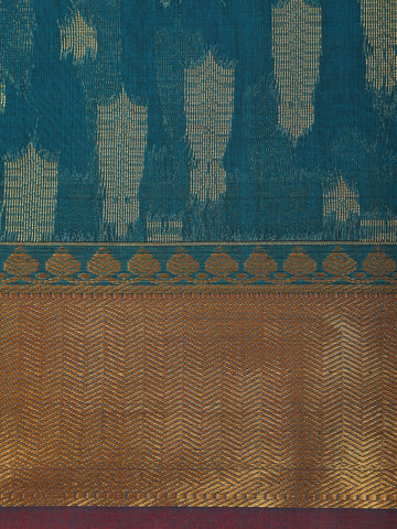 Teal Green Abstract Zari Woven Design Silk Cotton Saree with Contrast Border