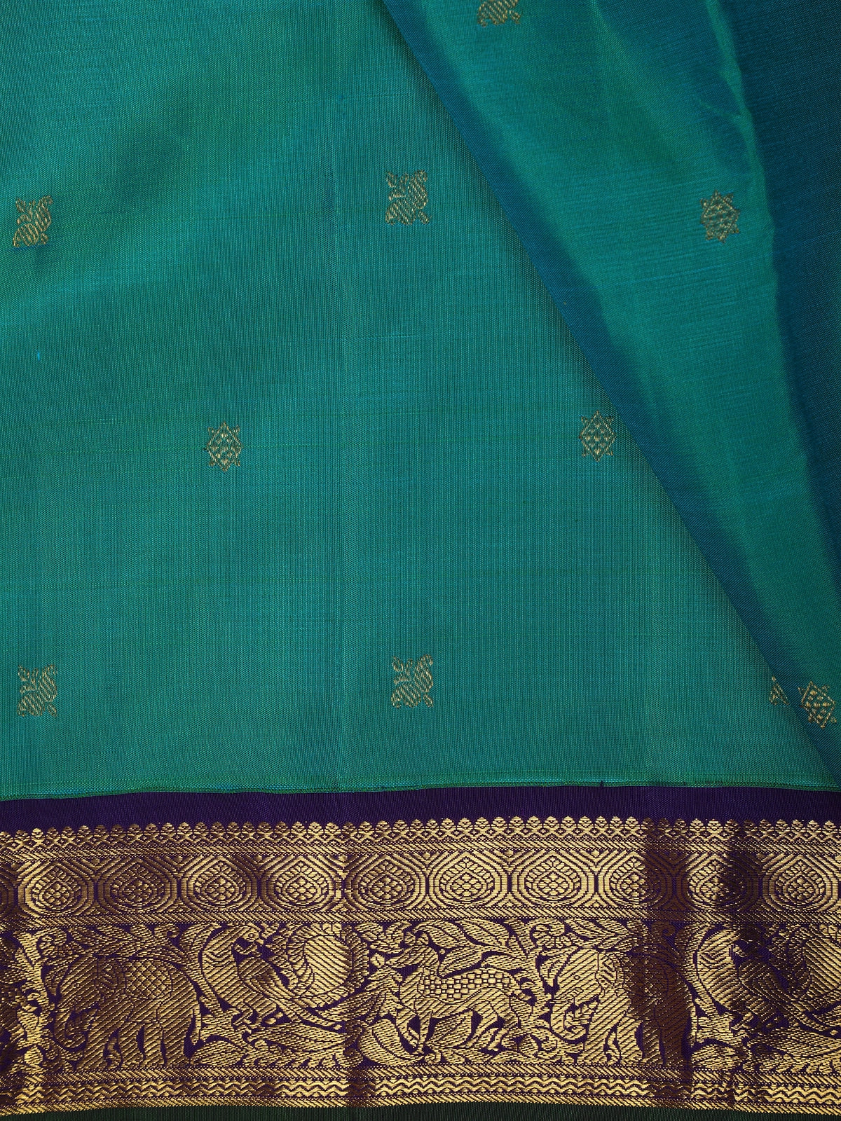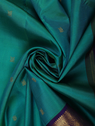 Teal Green Butta Zari Woven Design Pure Kanchipuram Silk Saree with Contrast Zari Border