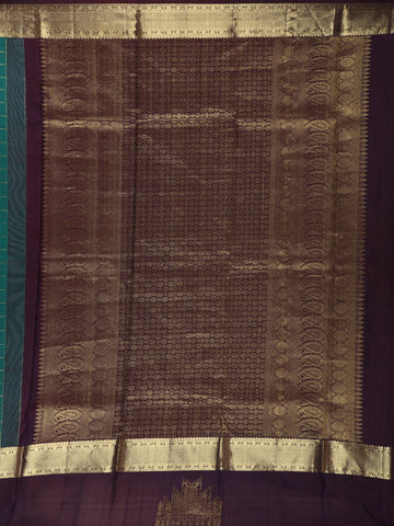 Perfect for weddings, festive celebrations, and traditional ceremonies, this teal green Kanchipuram silk saree blends classic craftsmanship with vibrant contrast detailing, making it a timeless and statement-worthy addition to any silk saree collection.