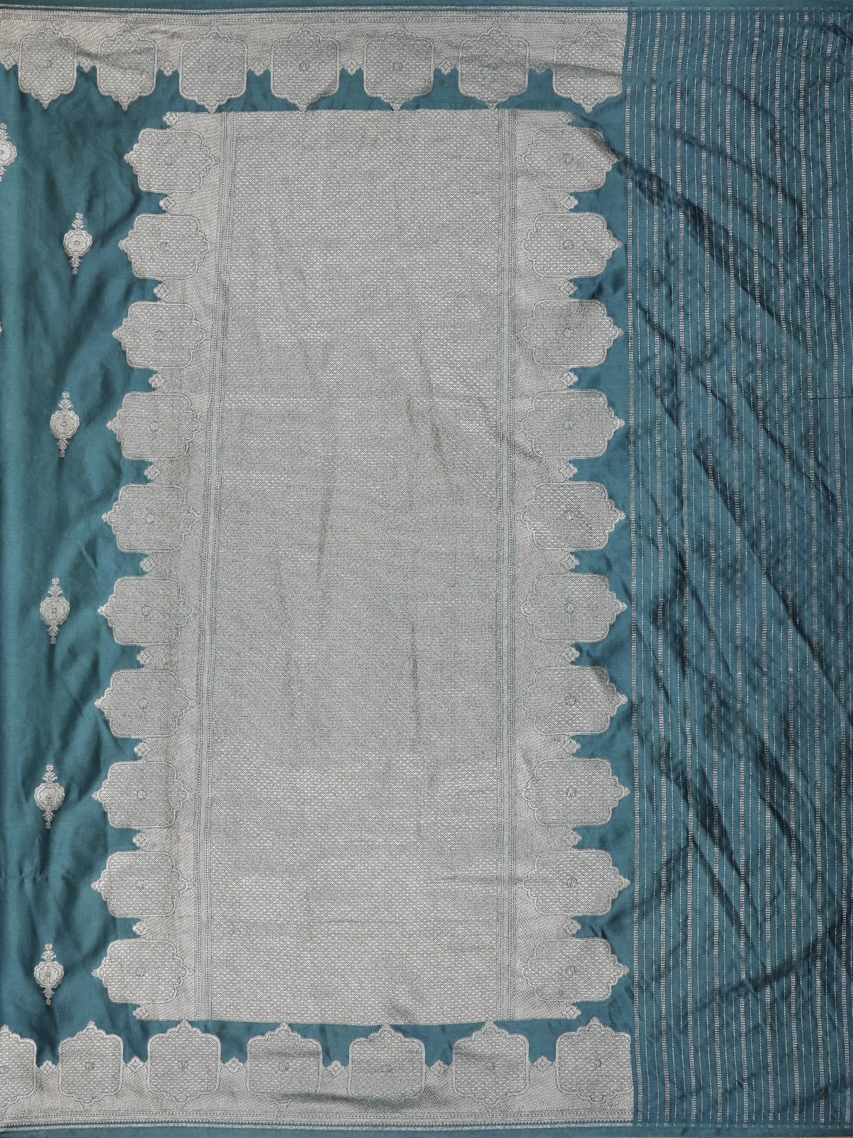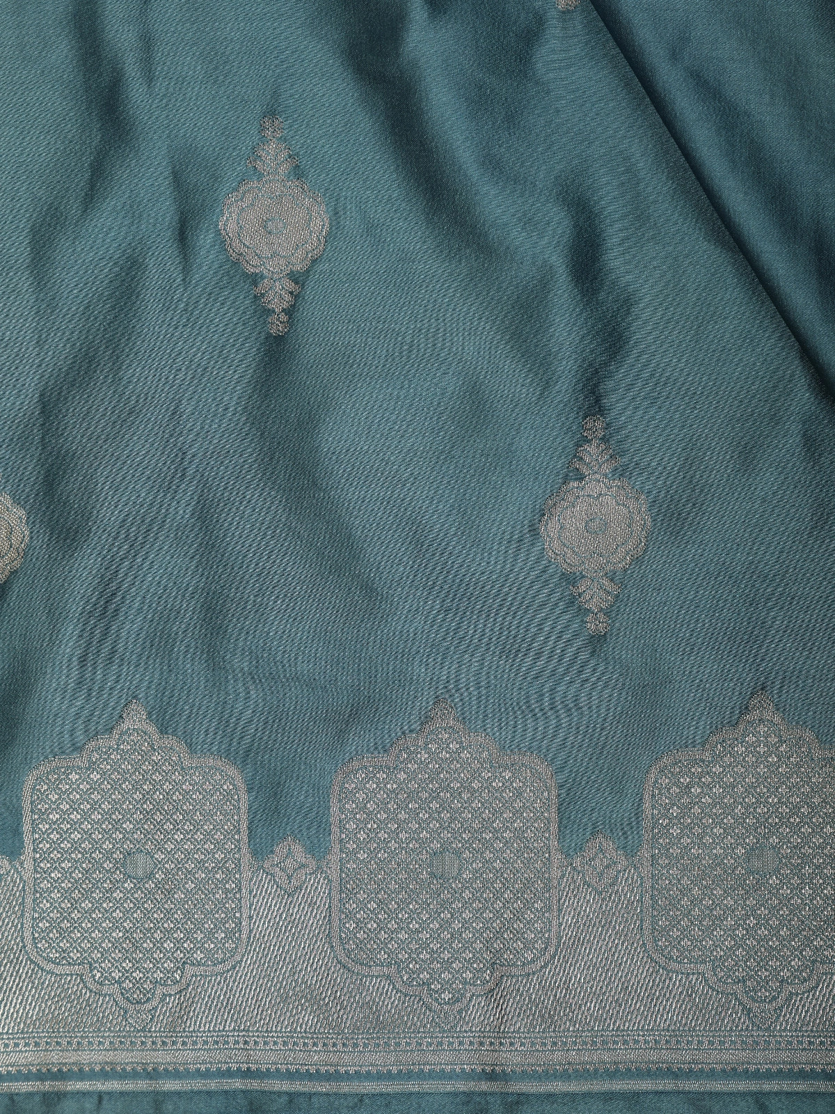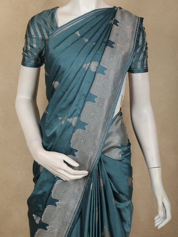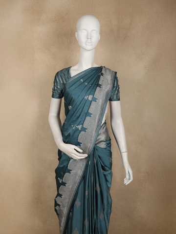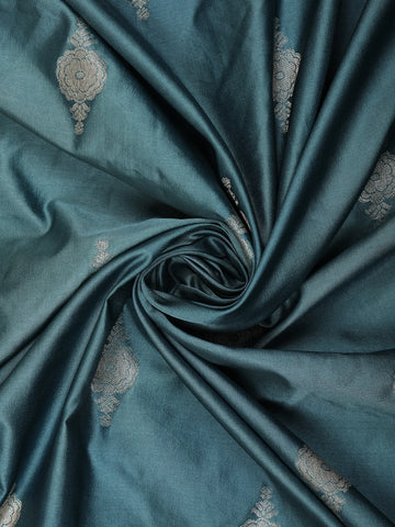 Teal Green Floral Butta Zari Woven Design Pure Banarasi Silk Saree