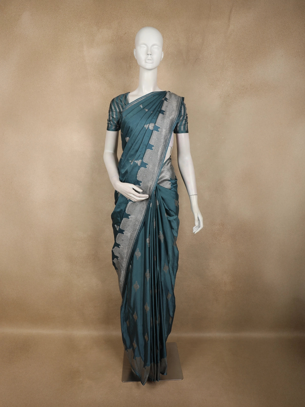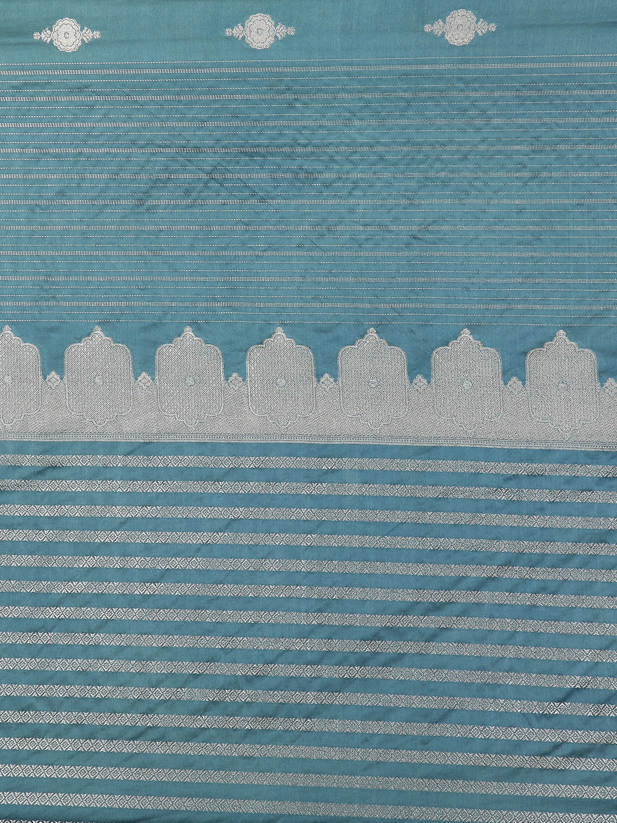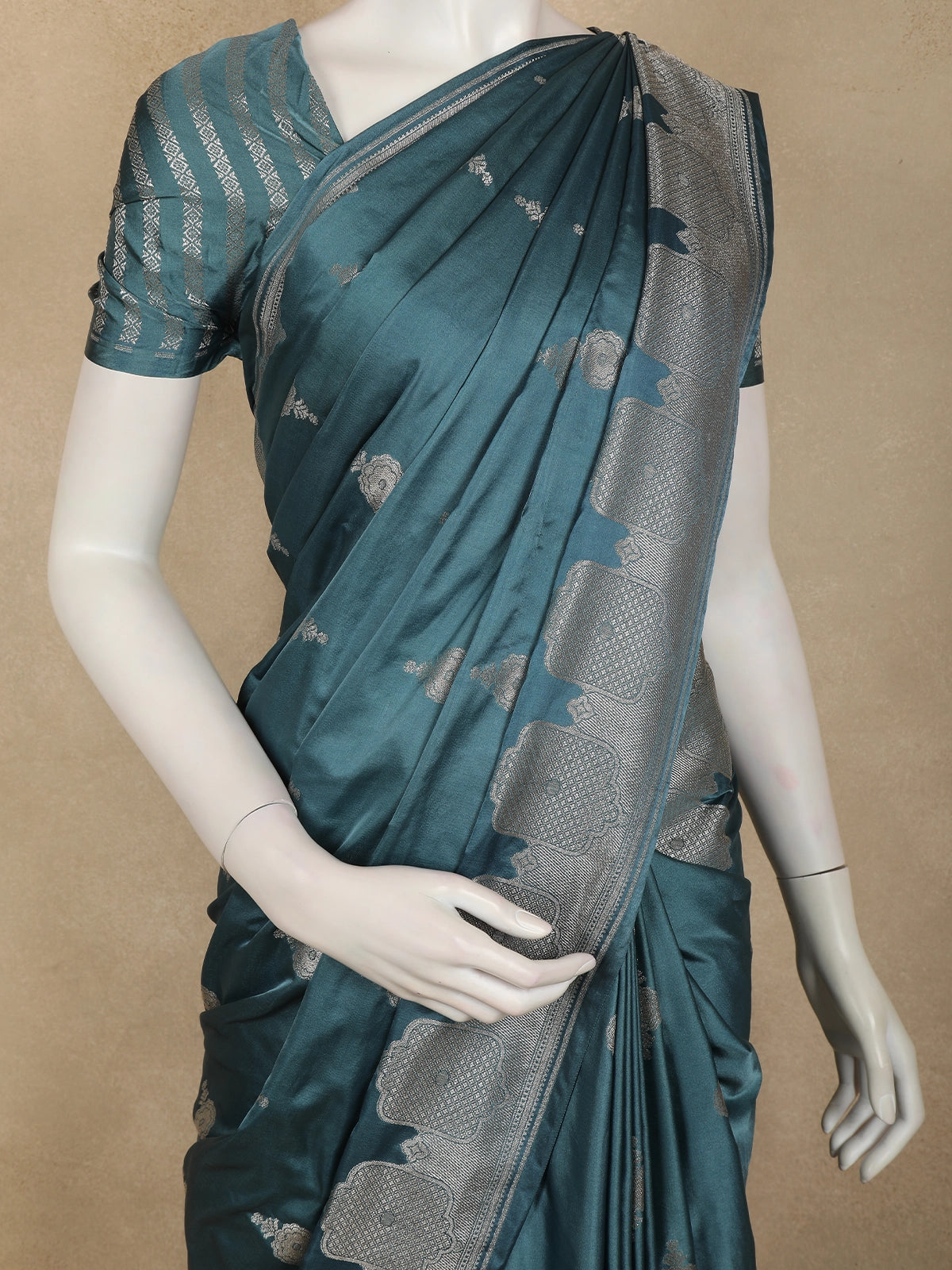 Teal Green Floral Butta Zari Woven Design Pure Banarasi Silk Saree