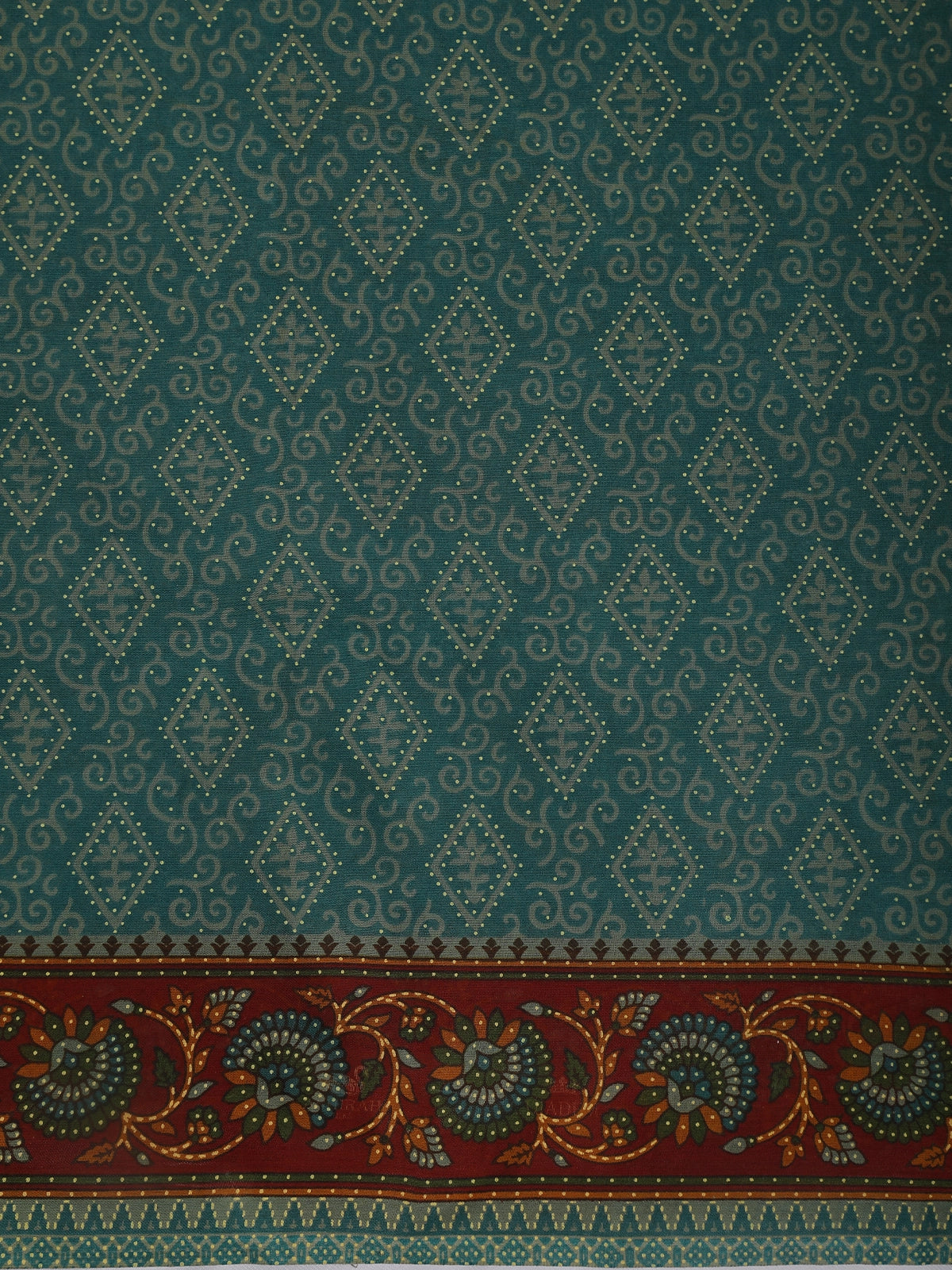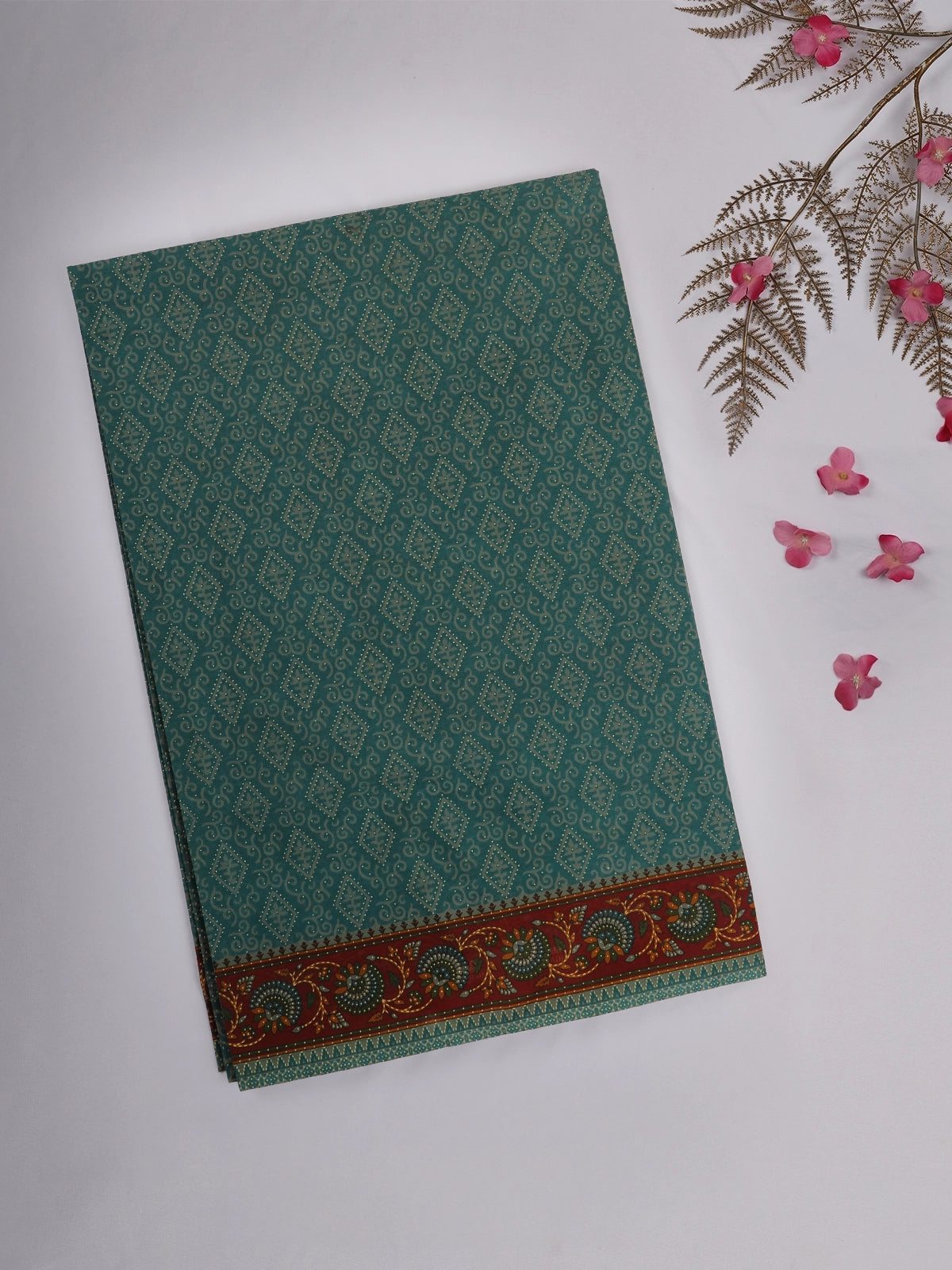 Teal Green Geometric Printed Design Karishma Cotton Saree