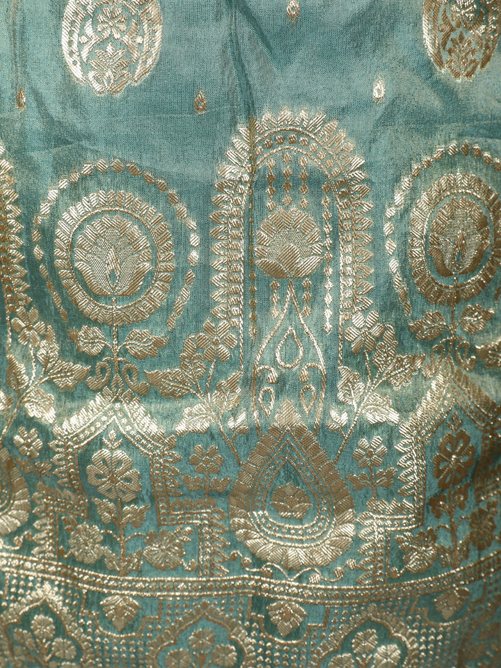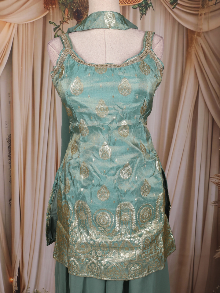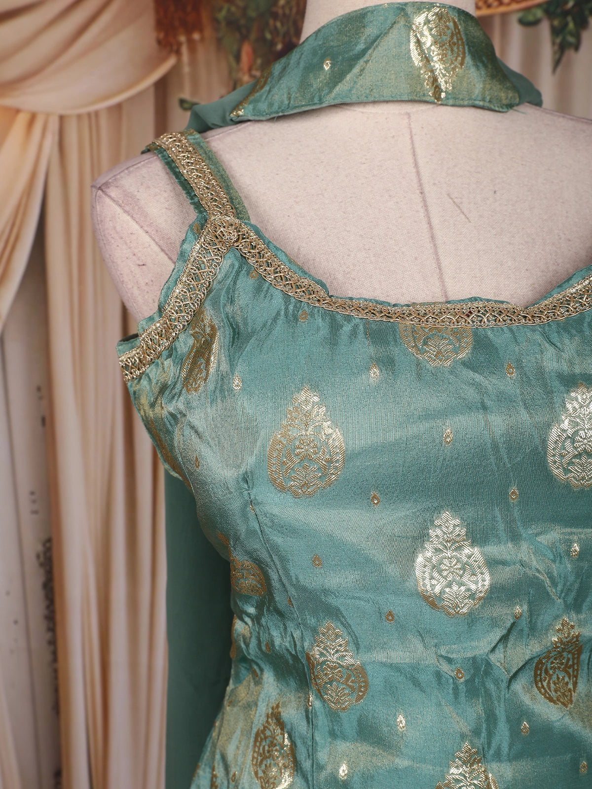 Teal Green Zari Woven Design Silk Palazzo Suit with Dupatta