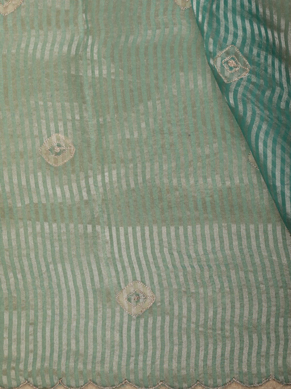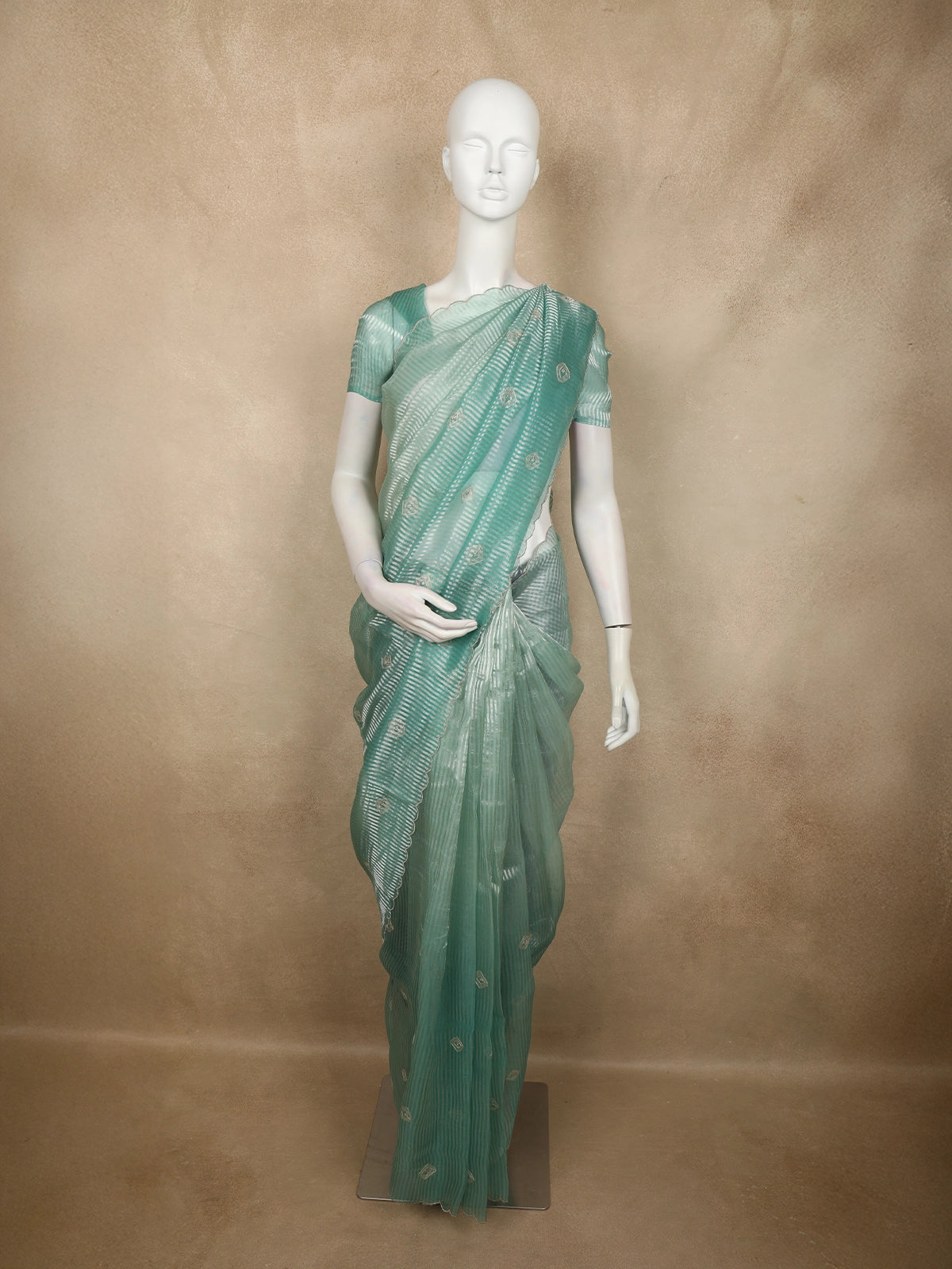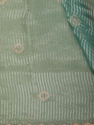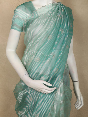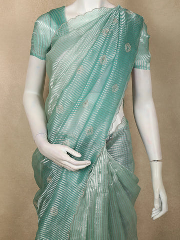 Turquoise Blue Butta Embroidered Design Pure Organza Saree with Scalloped Border