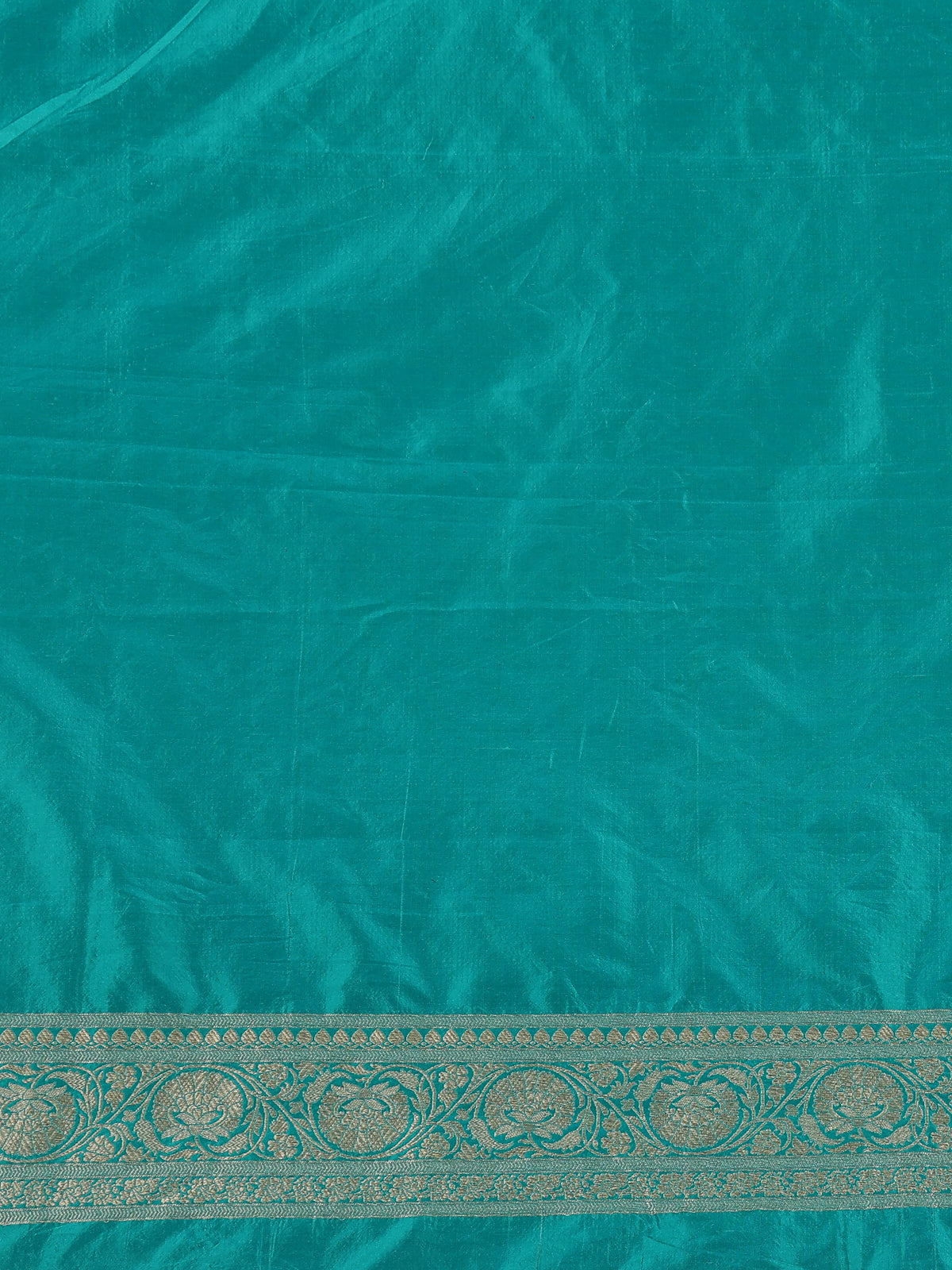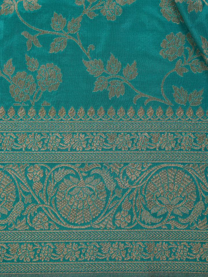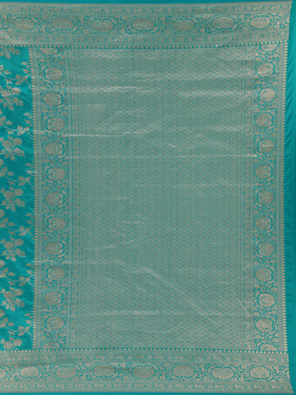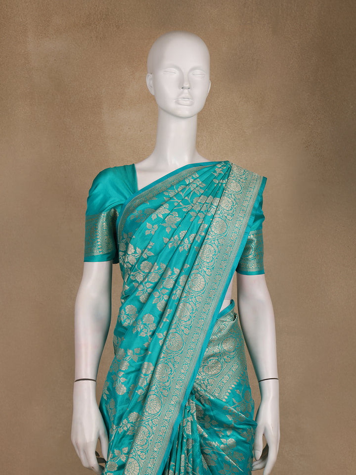 Turquoise Blue Floral Woven Banarasi Silk Saree With Zari Border