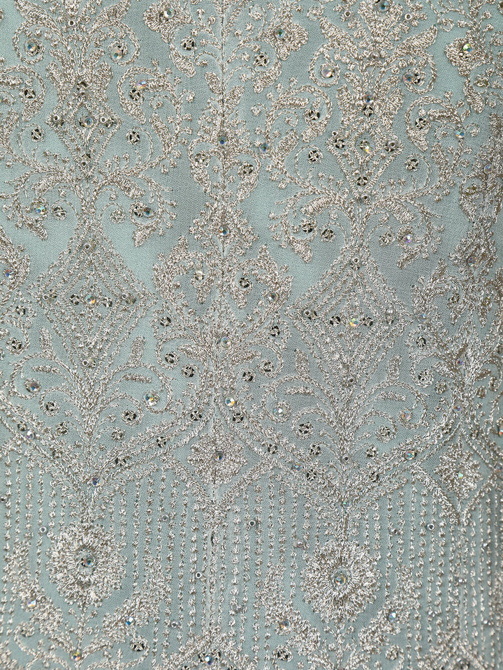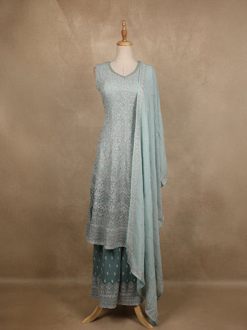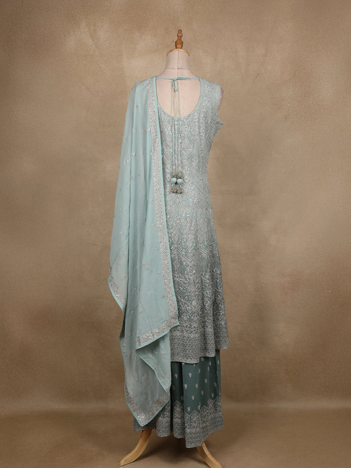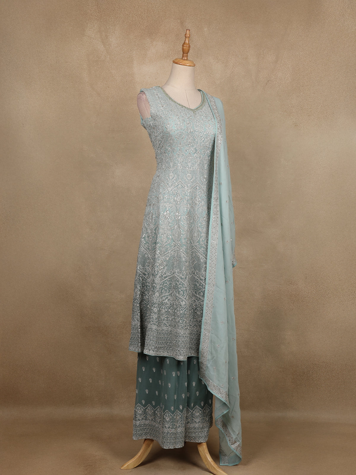 Turquoise Green Sequins Embroidered Georgette Palazzo Suit