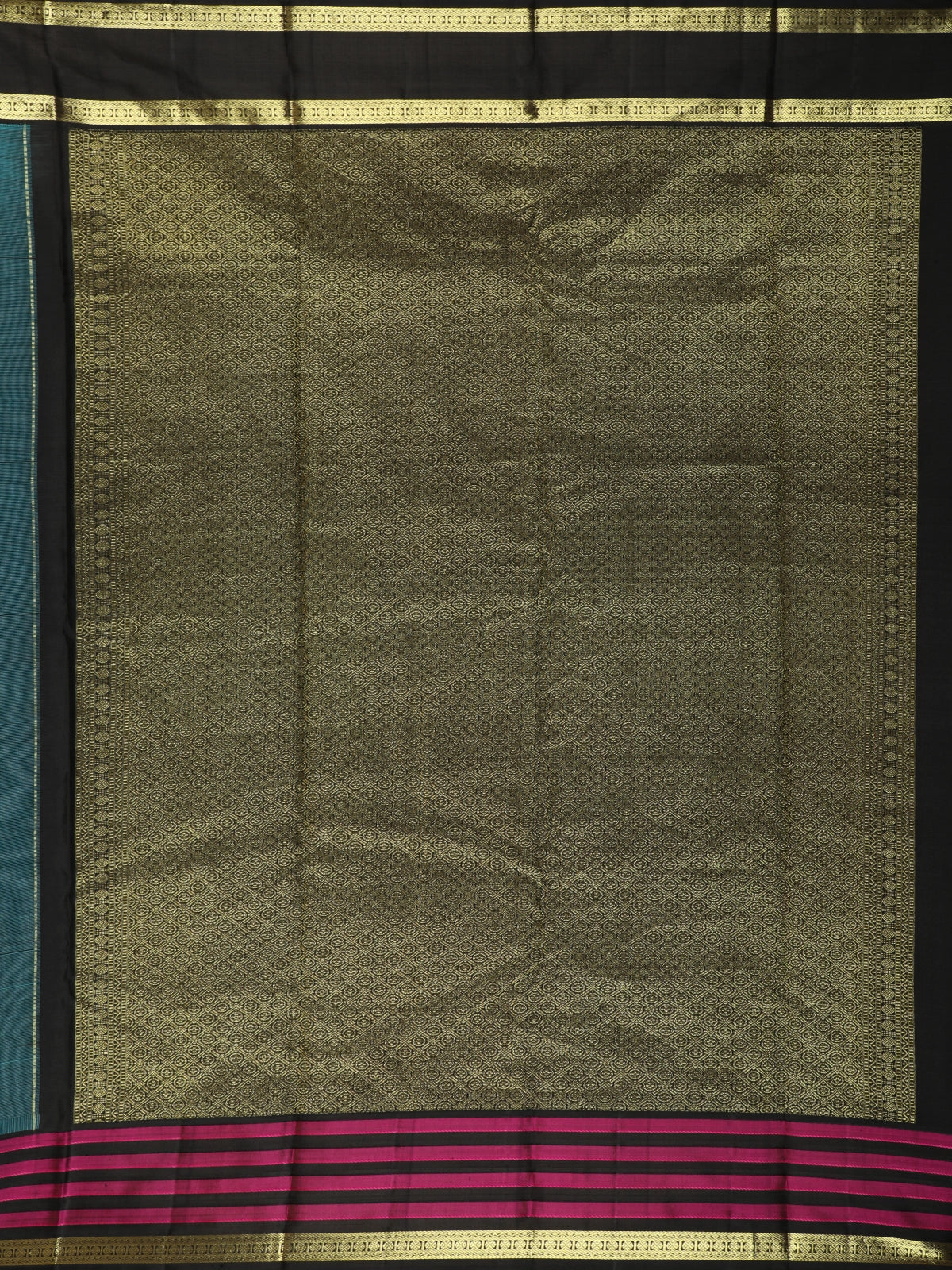This Turquoise Blue Solid Woven Design Pure Kanchipuram Silk Saree is a striking blend of timeless elegance and bold contrast. Crafted from luxurious pure Kanchipuram silk, the saree features a vibrant turquoise blue body with a smooth, lustrous finish that highlights the richness of traditional silk weaving.