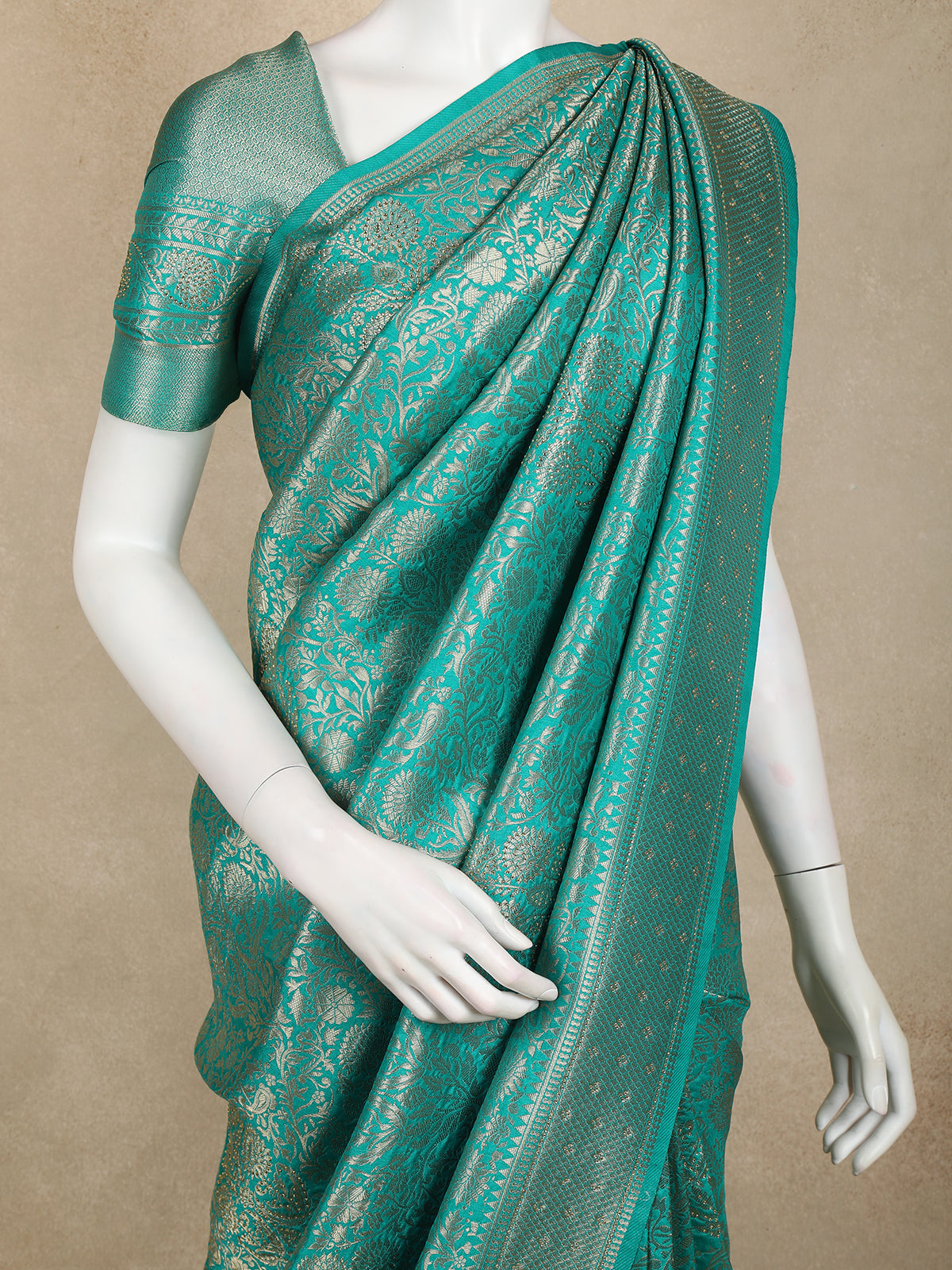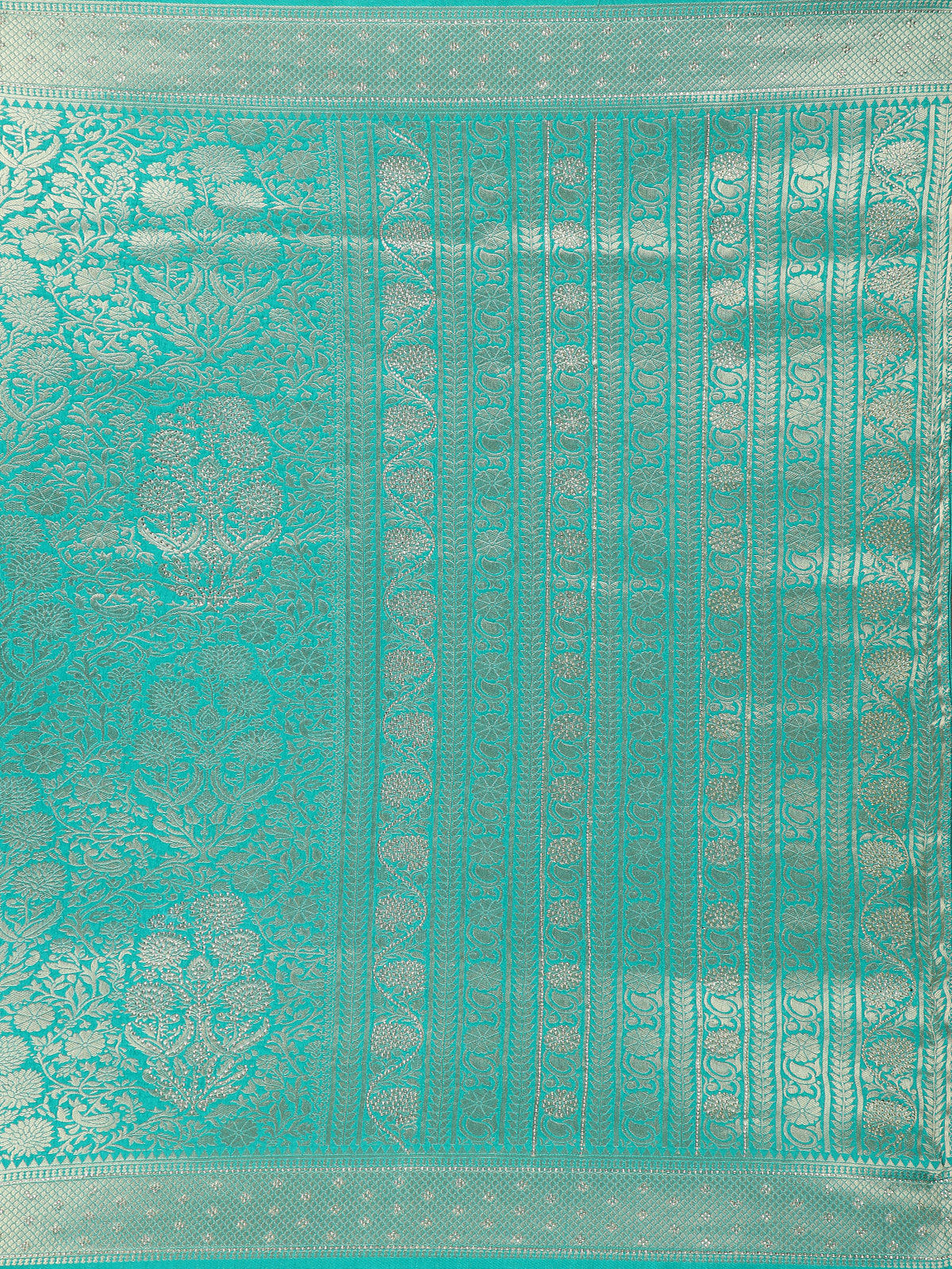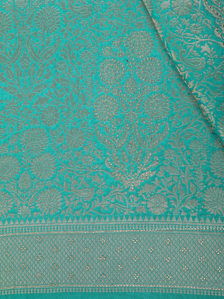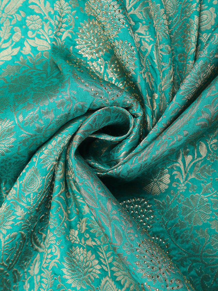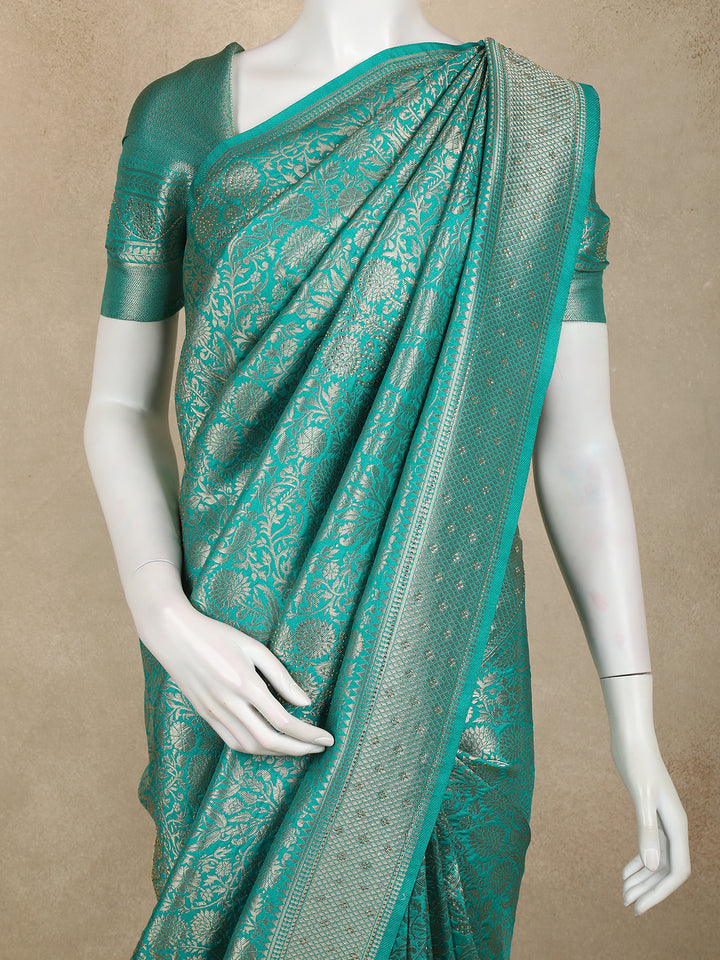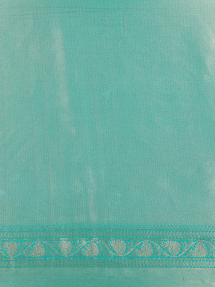 Turquoise Green Banarasi Saree with Floral Design And Designer Border