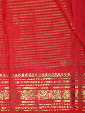 Vermilion Red Floral Butta Woven Design Pure Kanchipuram Silk Saree with Peacock Zari Border