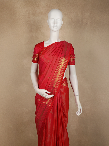 Perfect for weddings, temple ceremonies, and festive celebrations, this saree blends classic design with enduring luxury, making it a treasured addition to any bridal or festive wardrobe.