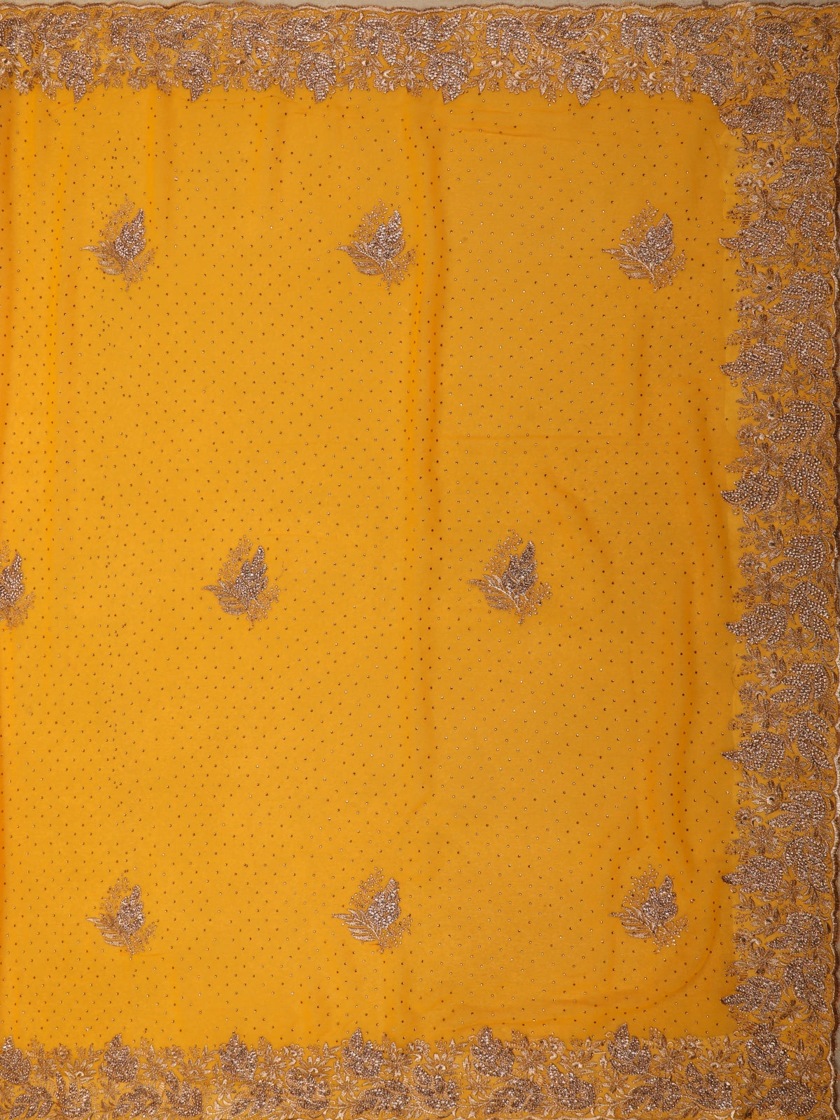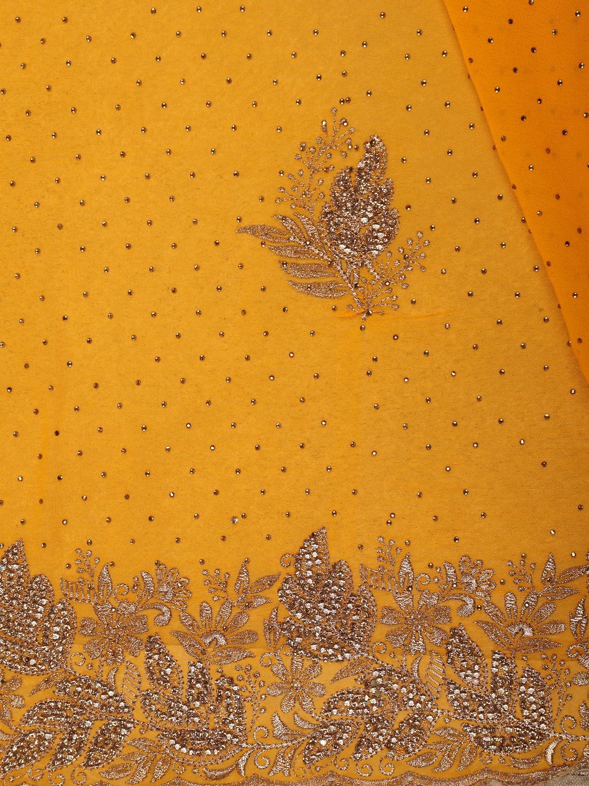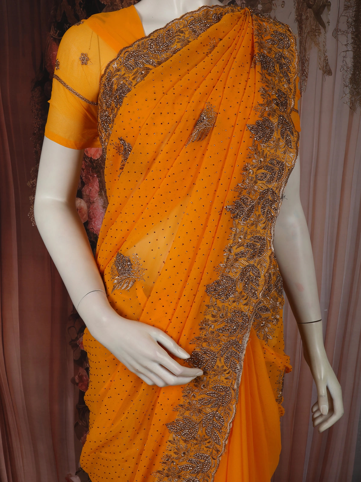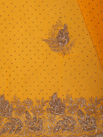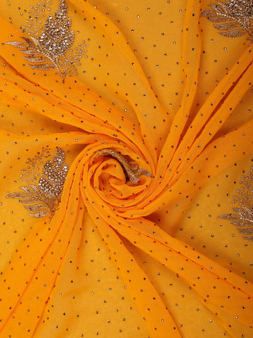 Vibrant Marigold Orange Floral Zari Embroidered and Stone Embellished Design Georgette Designer Saree