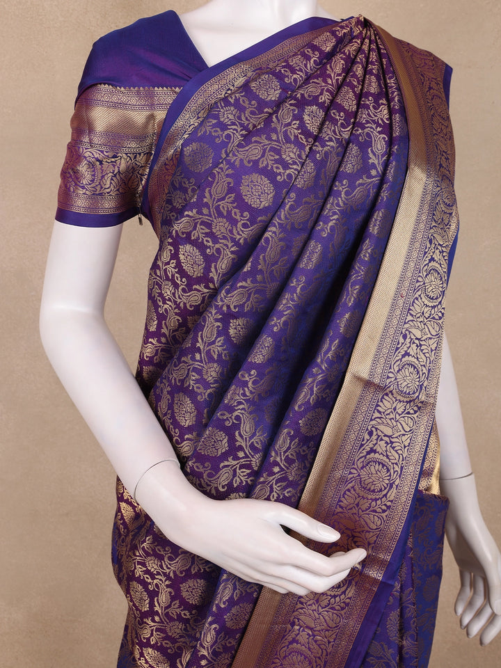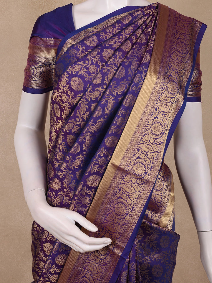 Violet Paisley Butta Design Kanchipuram Silk Saree