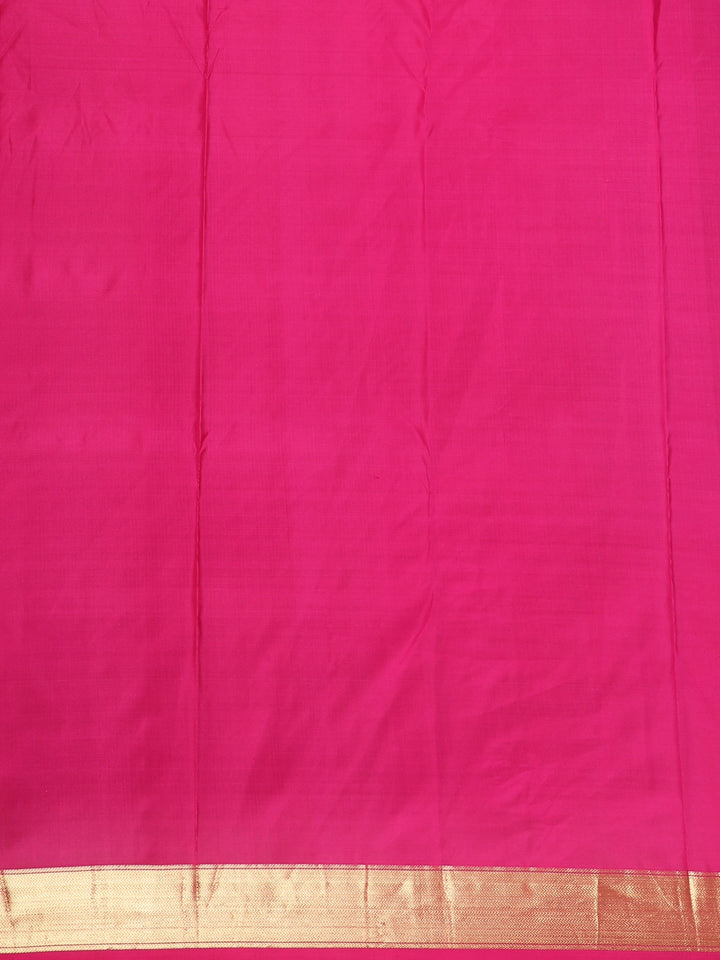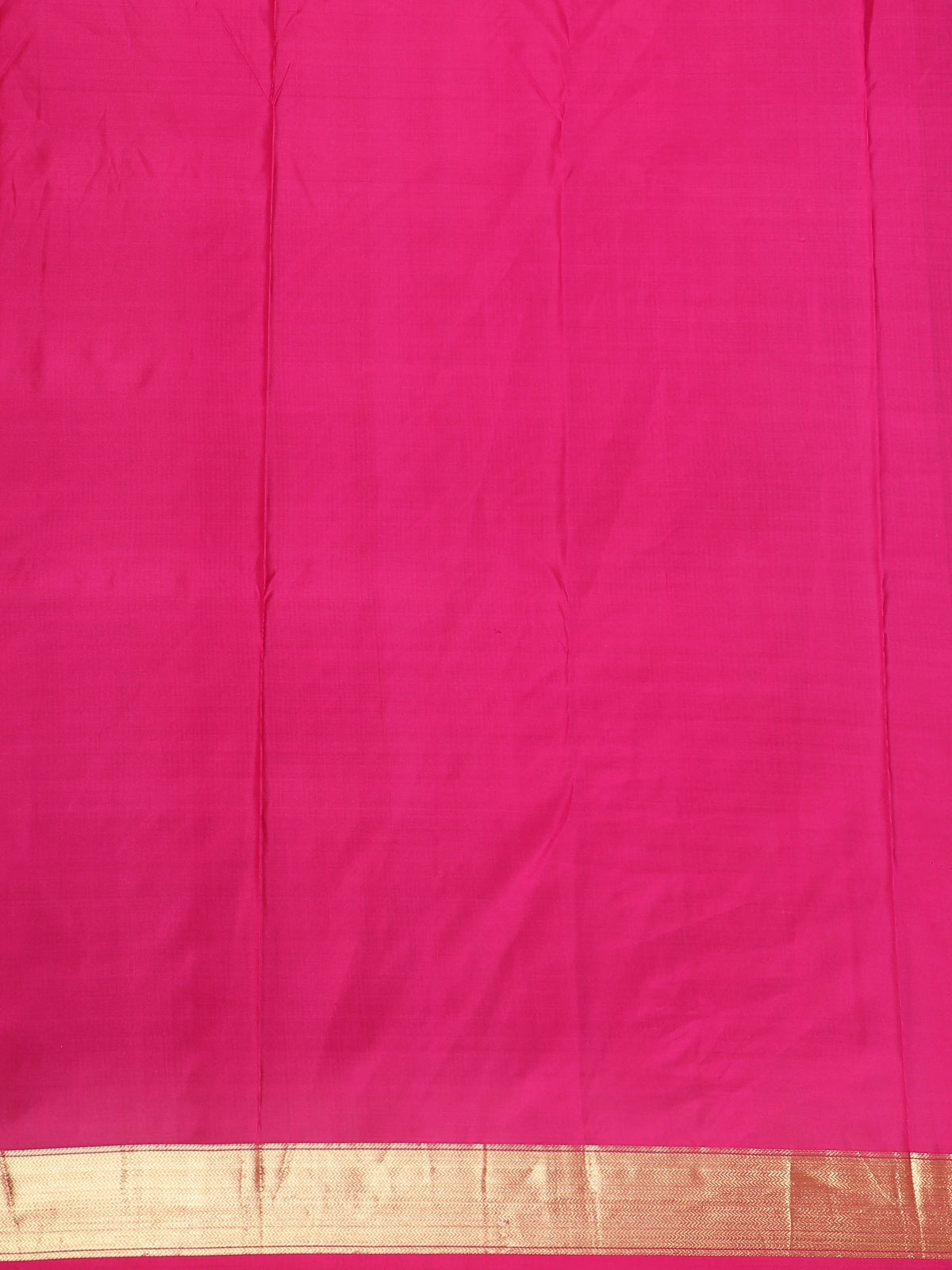 Paired with a matching contrast pink blouse, this saree is a stunning choice for weddings, temple festivals, and special celebrations. The luxurious silk fabric lends an enchanting sheen and a graceful fall, making you look effortlessly graceful.