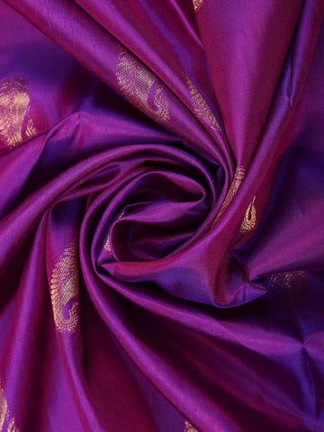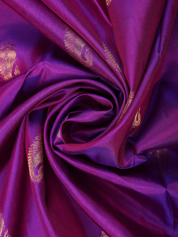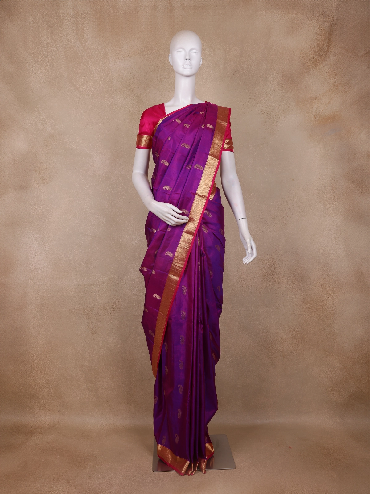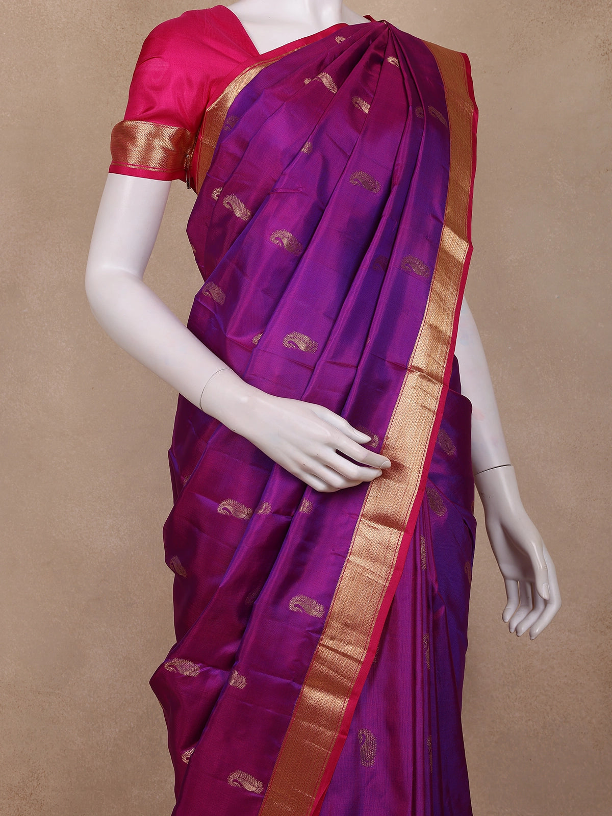 Violet Paisley Woven Kanchipuram Silk Saree with Zari Border
