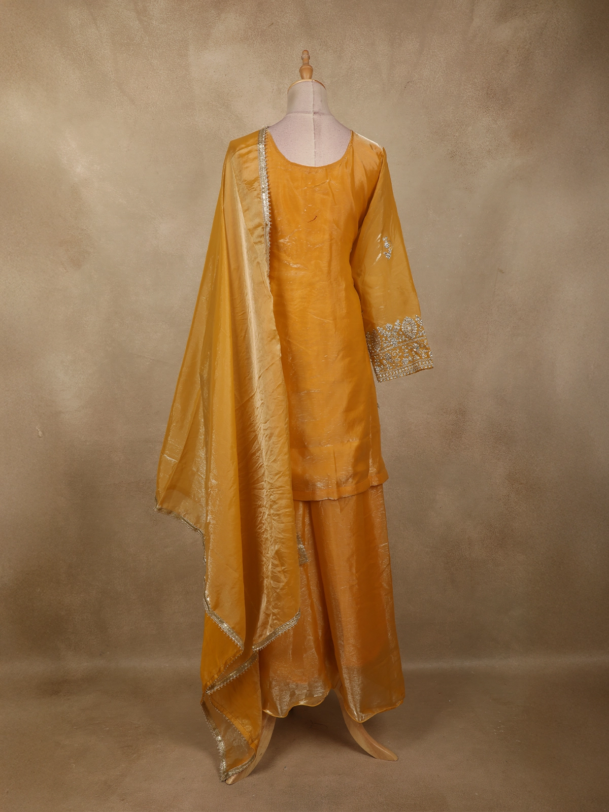 Ideal for weddings, festive celebrations, receptions, and special occasions, this mustard gold palazzo suit is perfect for those who appreciate rich colours, intricate embellishments, and timeless ethnic sophistication.