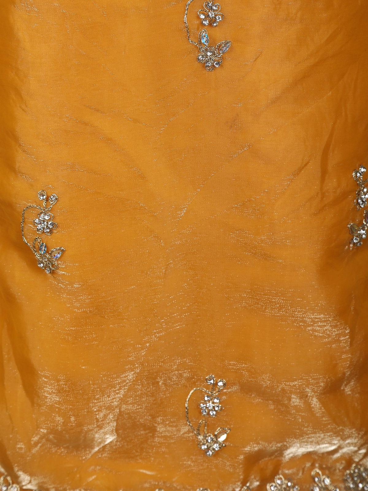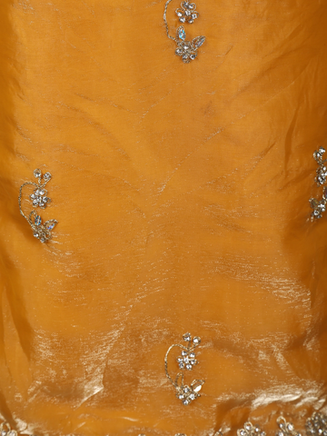 Warm Mustard Gold Floral Stone Embellished Design Organza Palazzo Suit with Dupatta