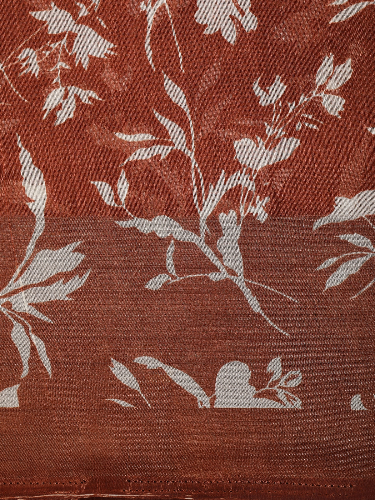 Warm Rust Brown Leaf Printed Design Mixed Cotton Saree