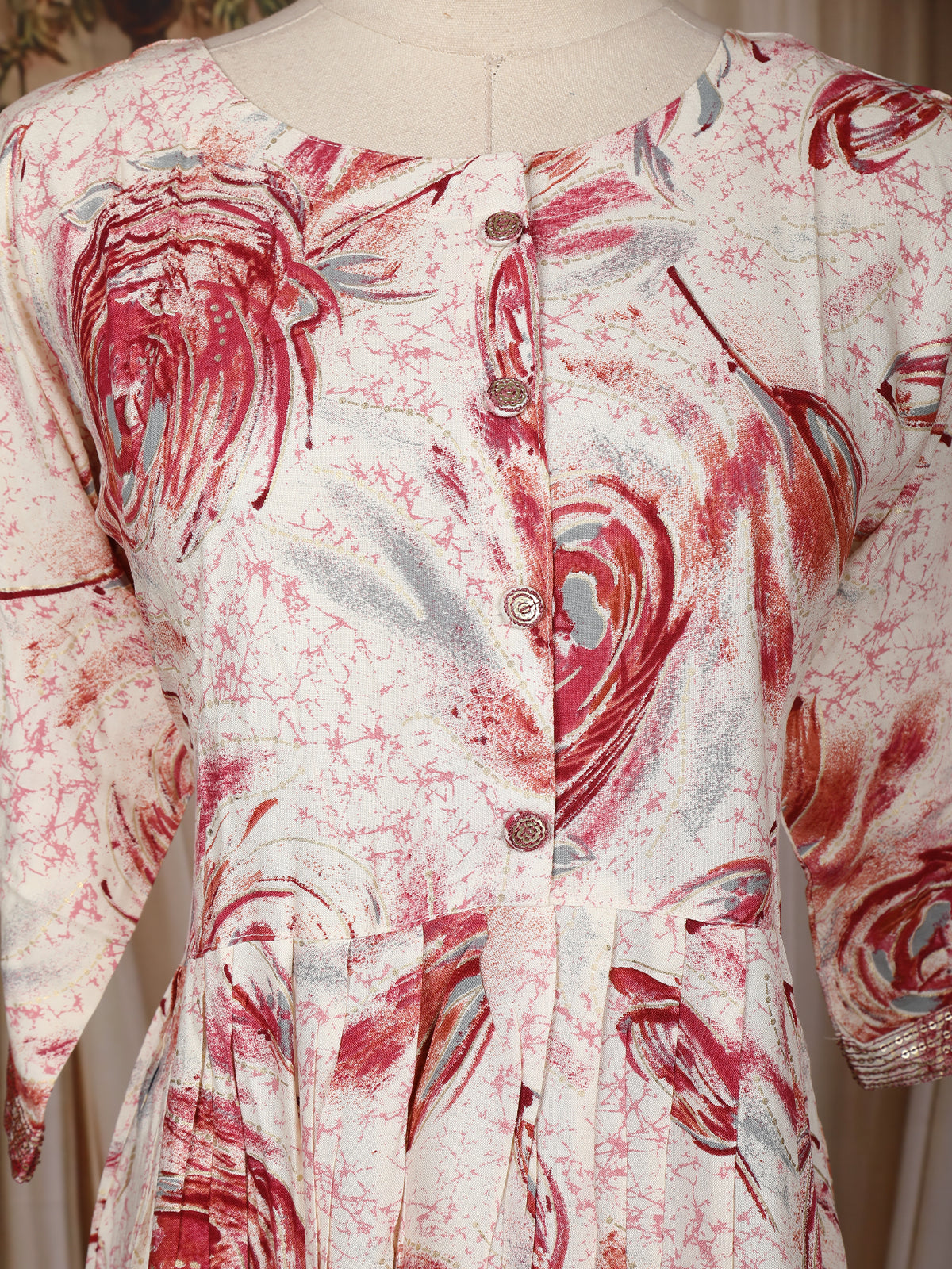 Step into effortless elegance with this White Abstract Floral Printed Cotton Kurti, a perfect fusion of comfort and contemporary design. Crafted from soft and breathable cotton, this kurti ensures all-day ease while keeping you stylishly poised. The soothing white base is beautifully elevated with vibrant red and grey abstract floral patterns, adding a touch of artistic sophistication to your casual wardrobe.