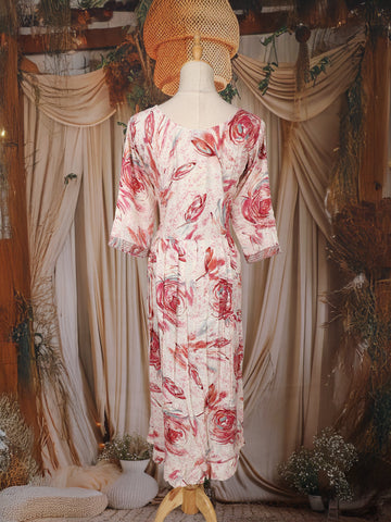 The round neckline and 3/4 sleeves enhance the kurti’s clean, graceful silhouette, making it ideal for both everyday wear and semi-casual outings. Its lightweight and airy fabric makes it a wonderful choice for warm days, while the versatile print allows easy pairing with solid cotton leggings or palazzo pants.