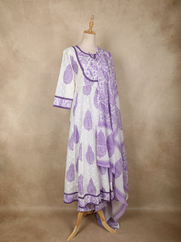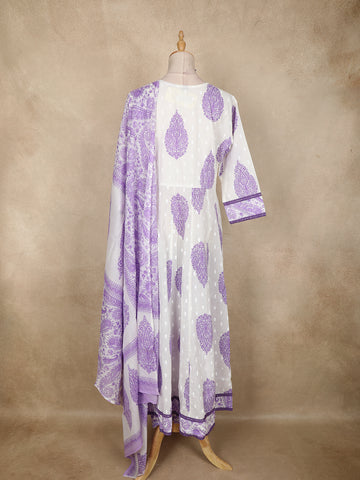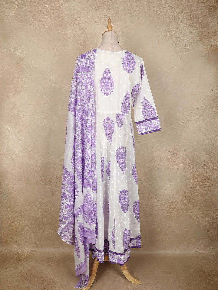 White Paisley Printed Cotton Anarkali Suit with Dupatta