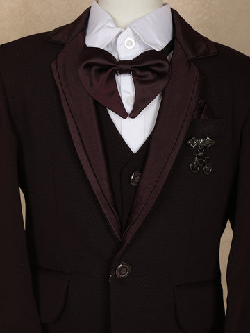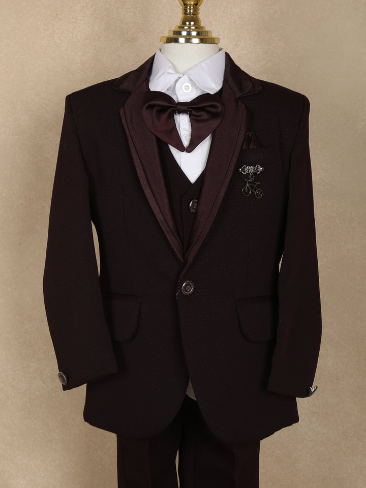 Wine Beads Embroidered Kids Party Wear Polyester Suit Set