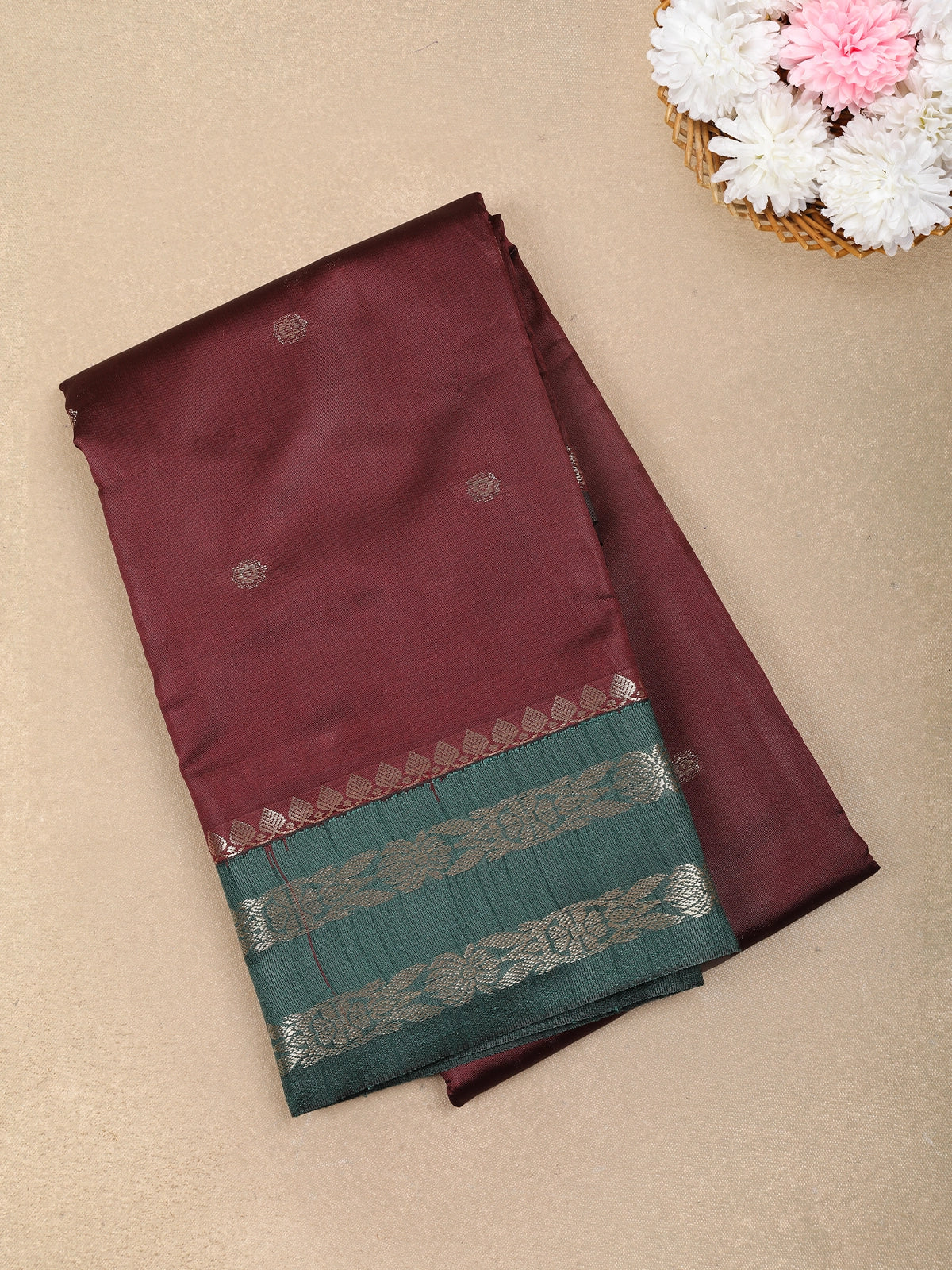 Wine Butta Woven Design Soft Silk Fancy Wear Saree with Contrast Zari Border