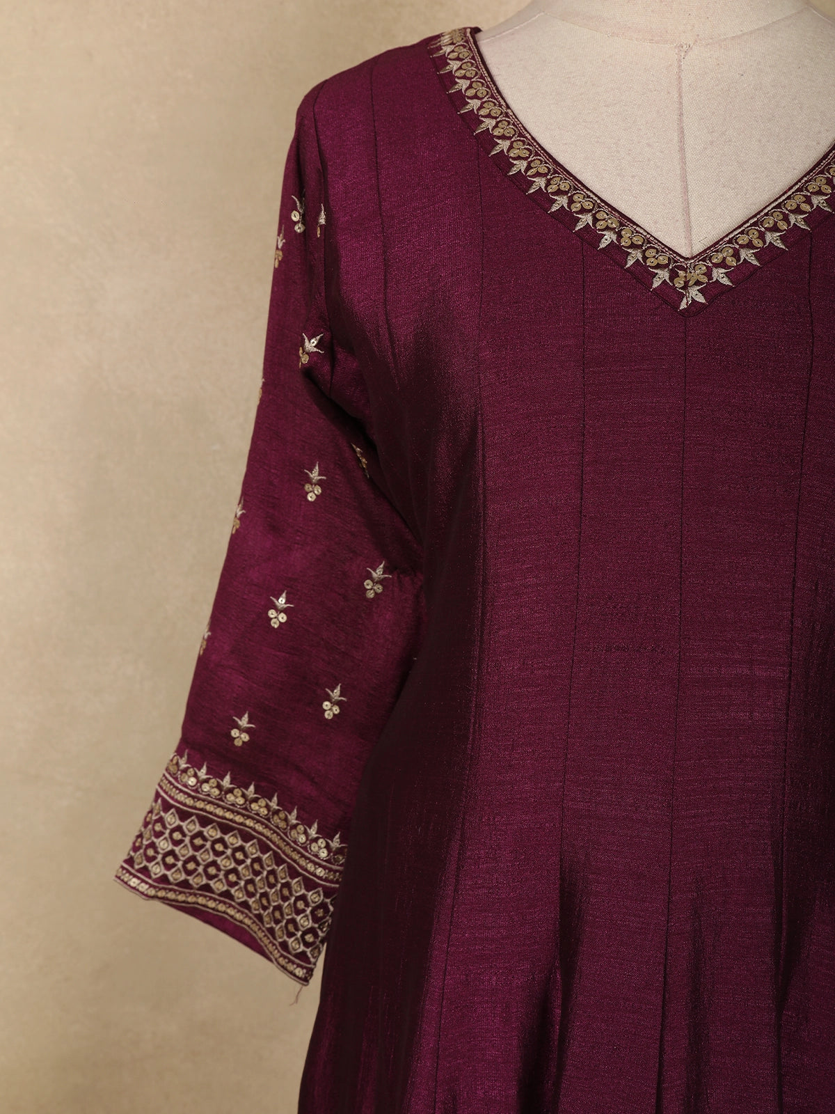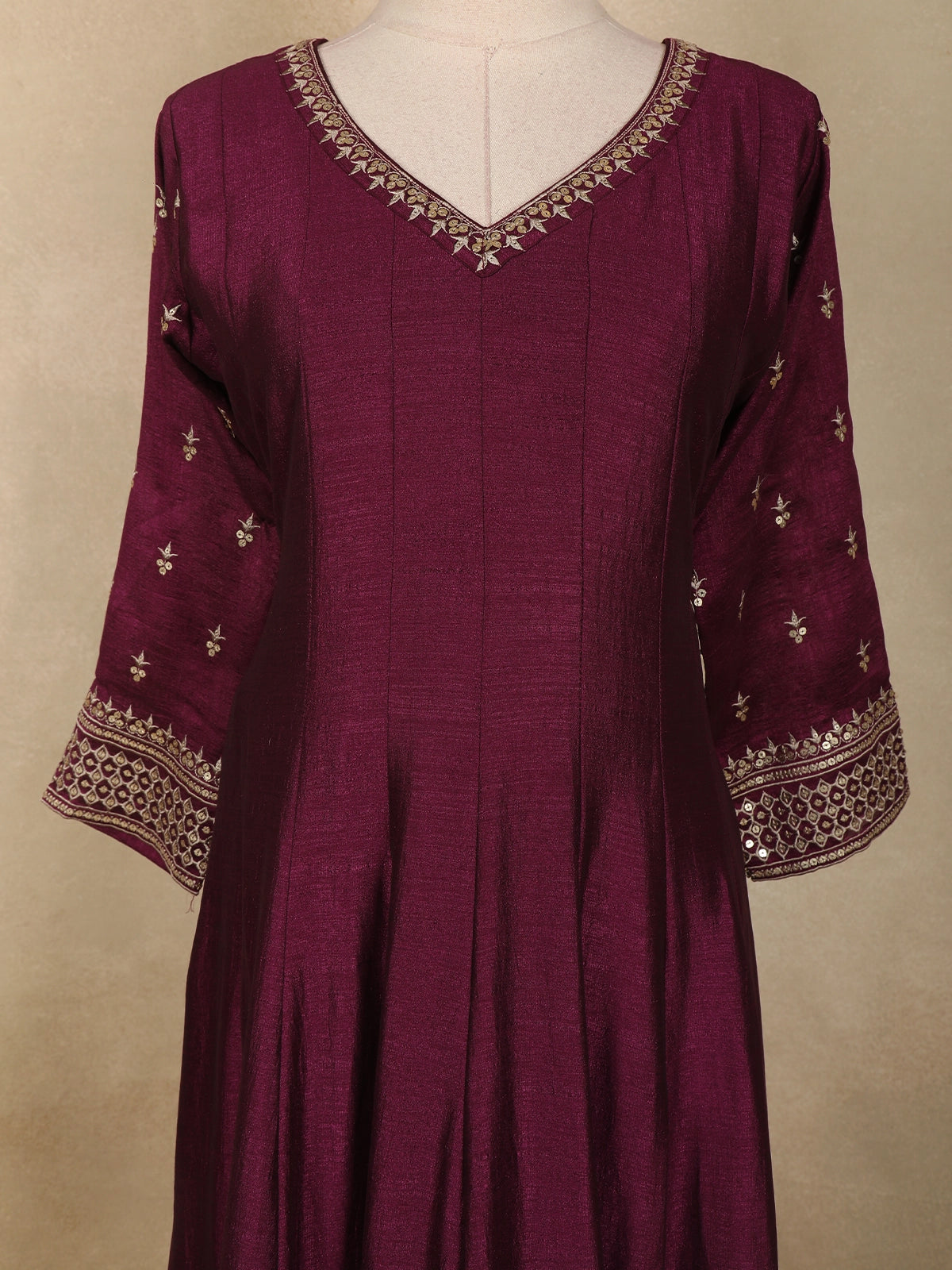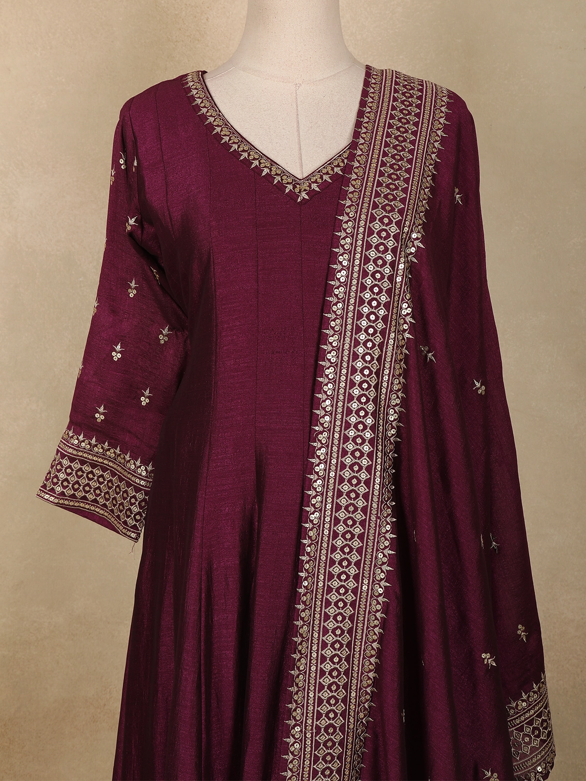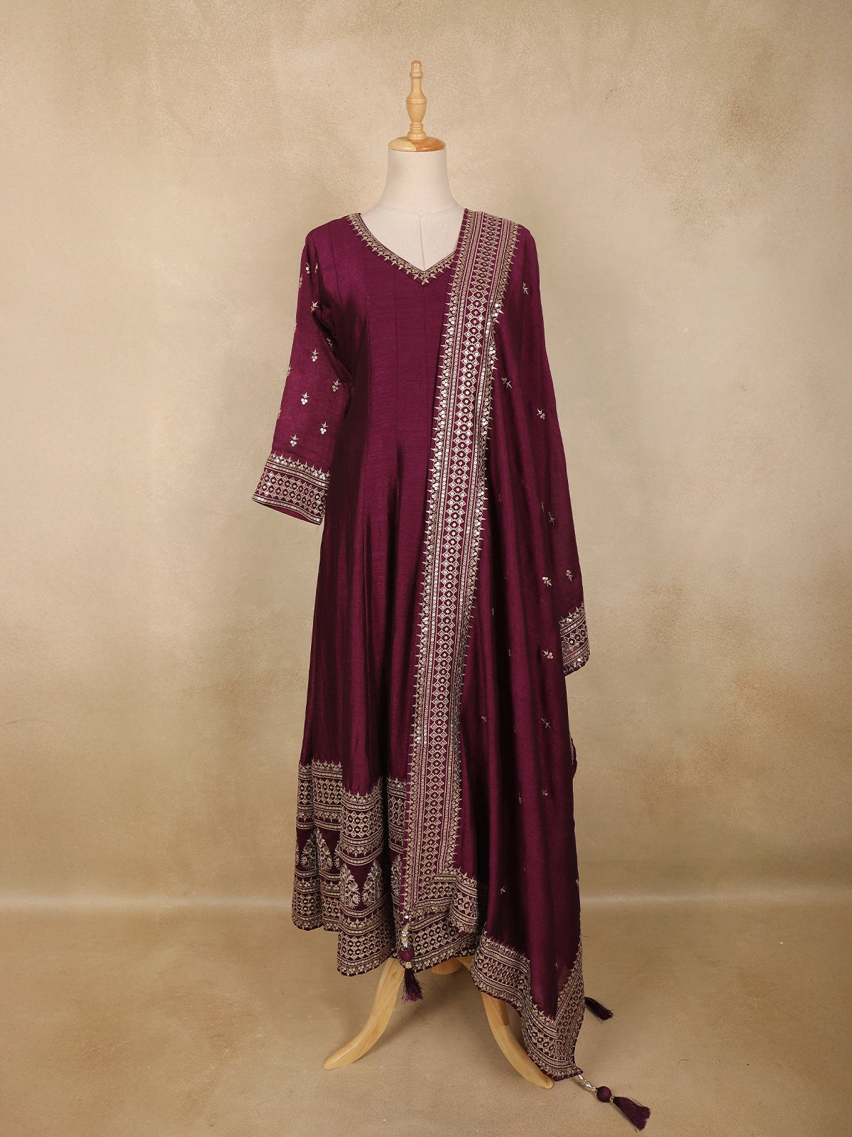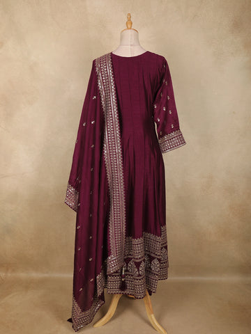 Wine Embroidered Georgette Anarkali Suit with Dupatta