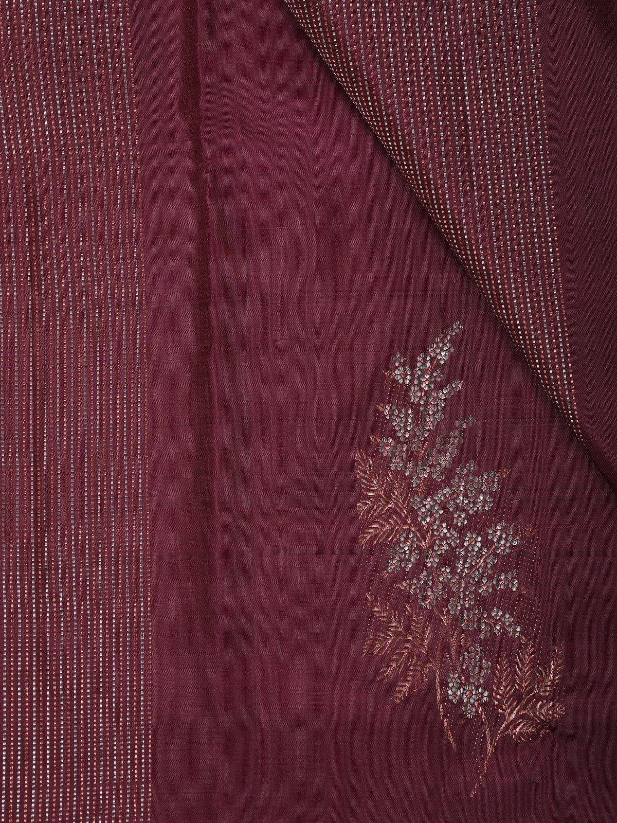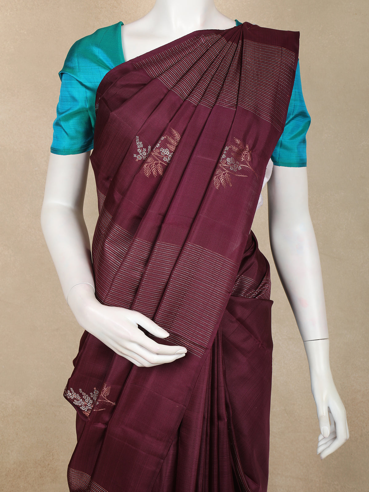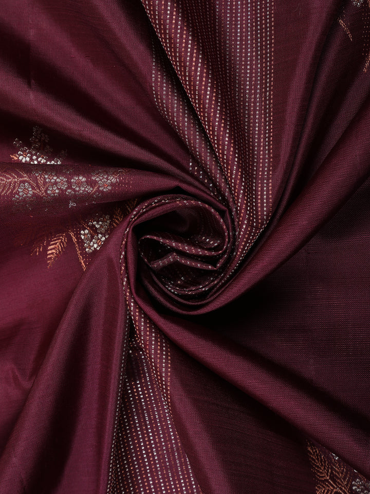 Wine Floral Butta Woven Pure Kanchipuram Silk Saree