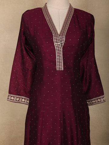 Wine Floral Embroidered Design Georgette Straight Cut Salwar Suit
