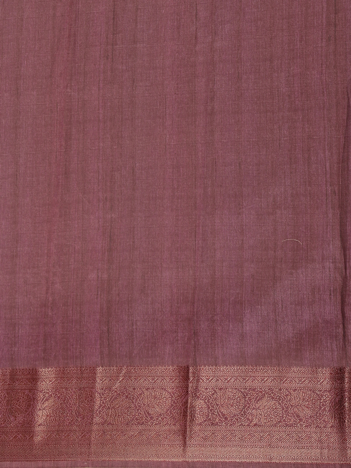 The Chandheri cotton fabric lends a sheer, lightweight elegance that drapes beautifully, while the woven zari border adds a regal shimmer along the edges. Its matching blouse in solid wine with zari detailing completes the look with understated elegance.