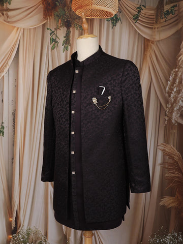 The longline silhouette, side slits, and sharp tailoring ensure a comfortable and flattering fit, making it the perfect choice for receptions, engagements, sangeet celebrations, and all evening events where style meets sophistication. This piece blends minimalism with luxury—ideal for those who prefer understated glamour.
