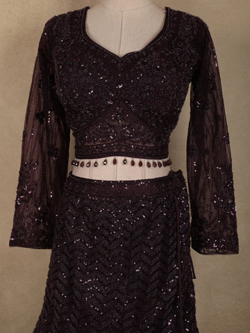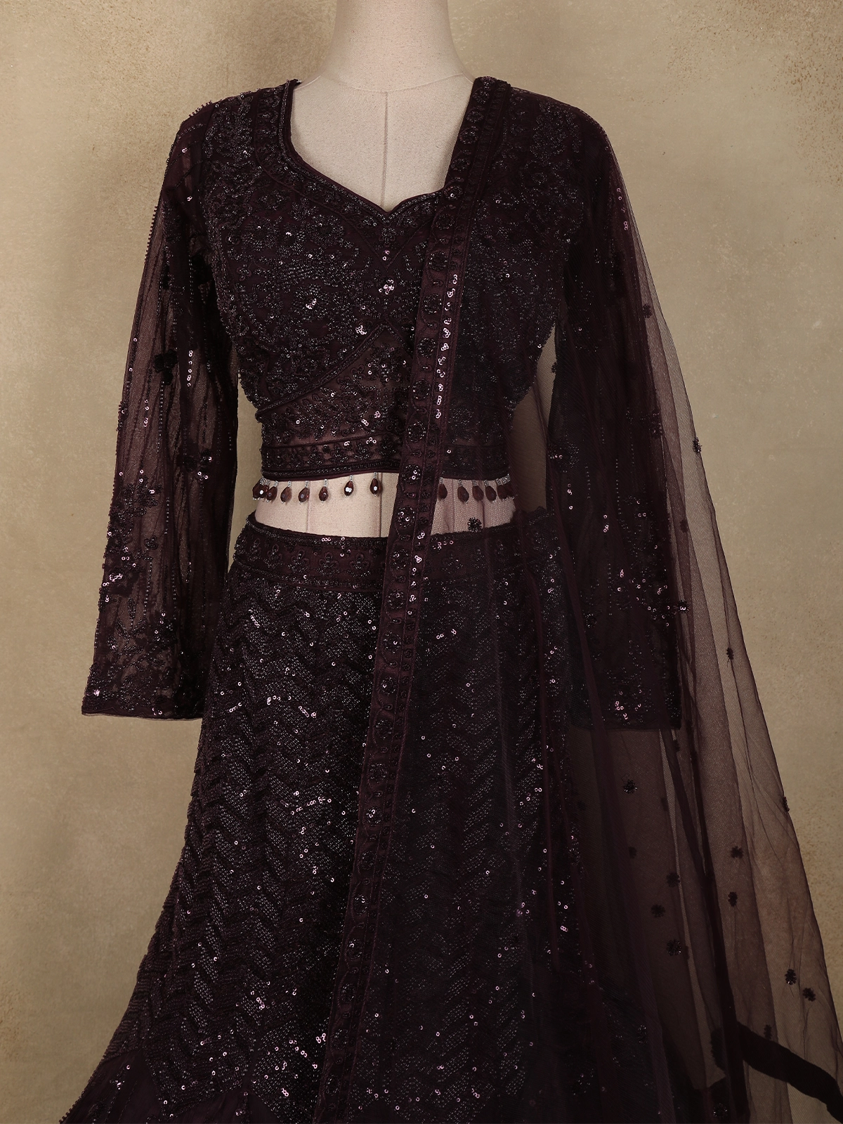 Wine Heavy Sequins and Beads Embroidered Design Mermaid Net Lehenga With Dupatta