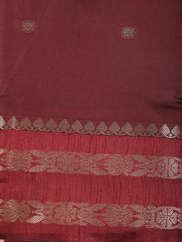 Adding a striking contrast, the saree is beautifully finished with a wine zari woven border, detailed with traditional floral patterns that enhance its festive charm. The soft silk fabric offers a smooth texture with a gentle sheen, ensuring a comfortable drape while maintaining an elegant silhouette.