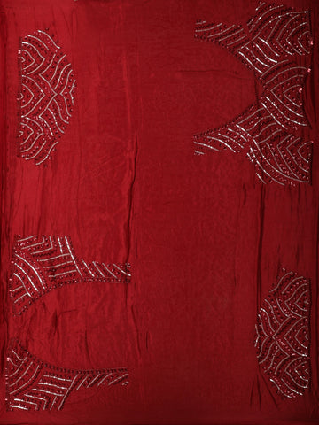 Wine Maroon Floral Leaf Sequins Design Chiffon Designer Saree