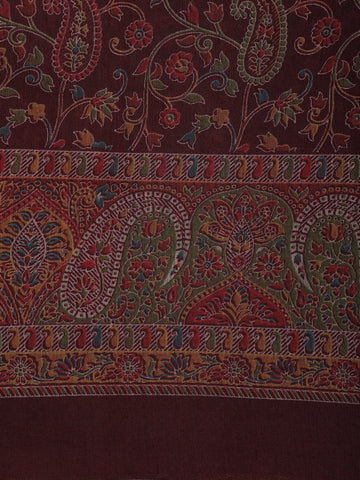 Wine Maroon Kalamkari Printed Design Mixed Silk Cotton Saree with Contrast Border