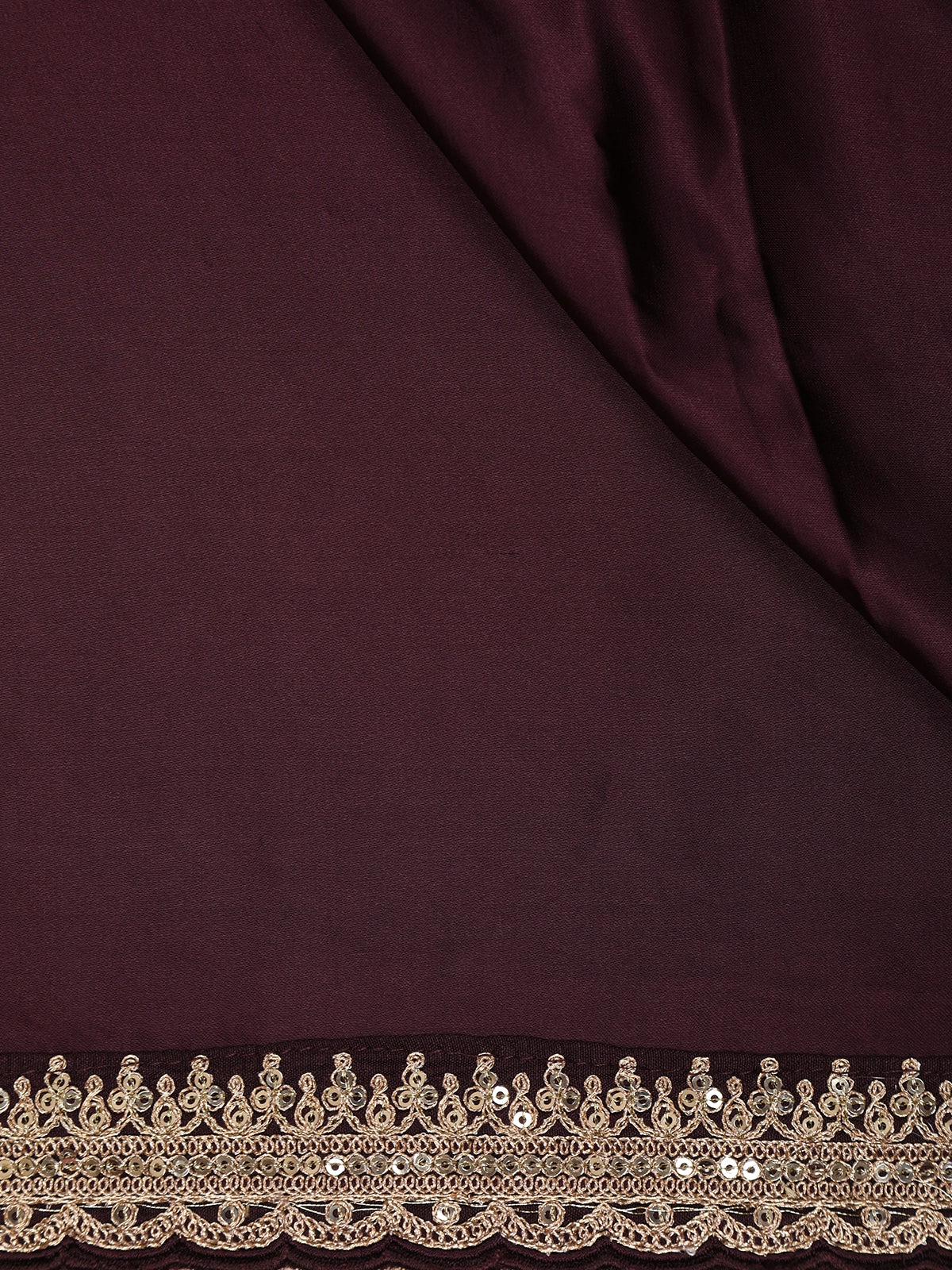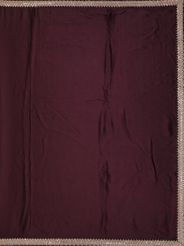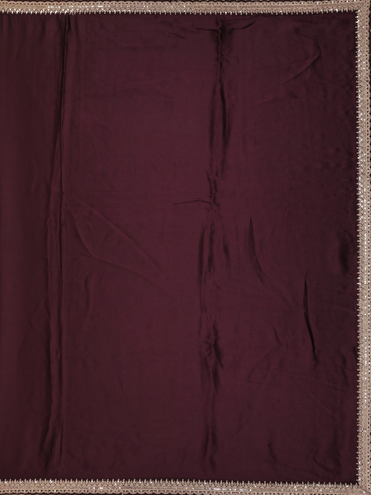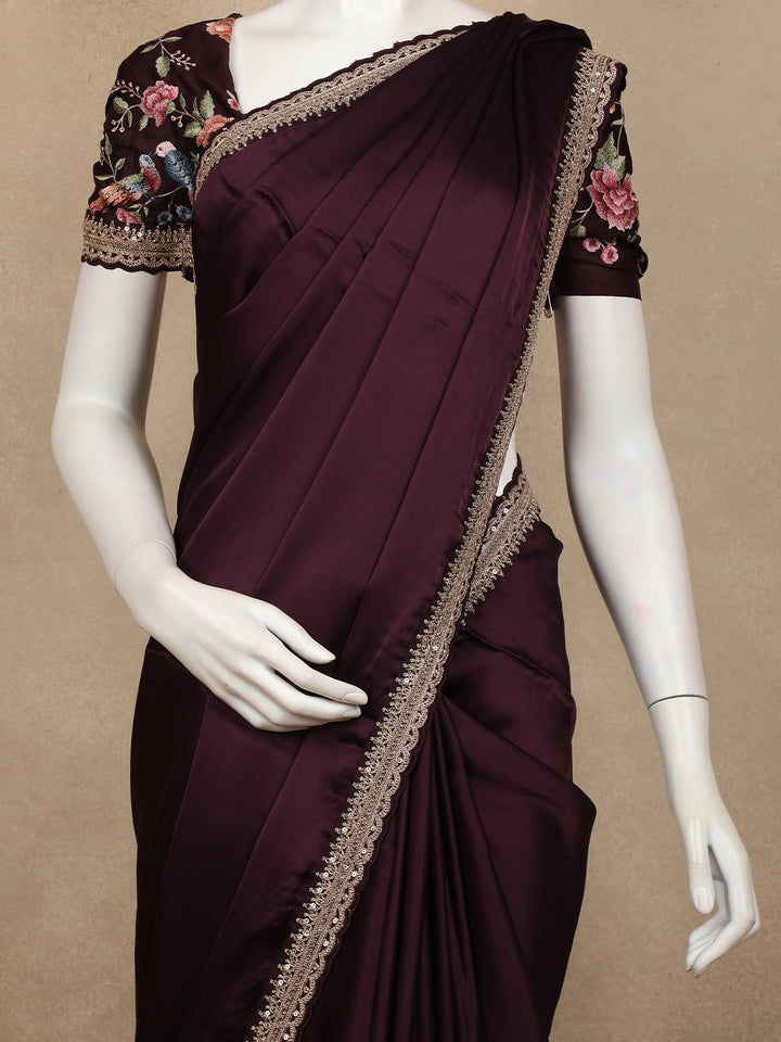 Wine Plain Satin Saree with Sequin Lace Border