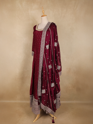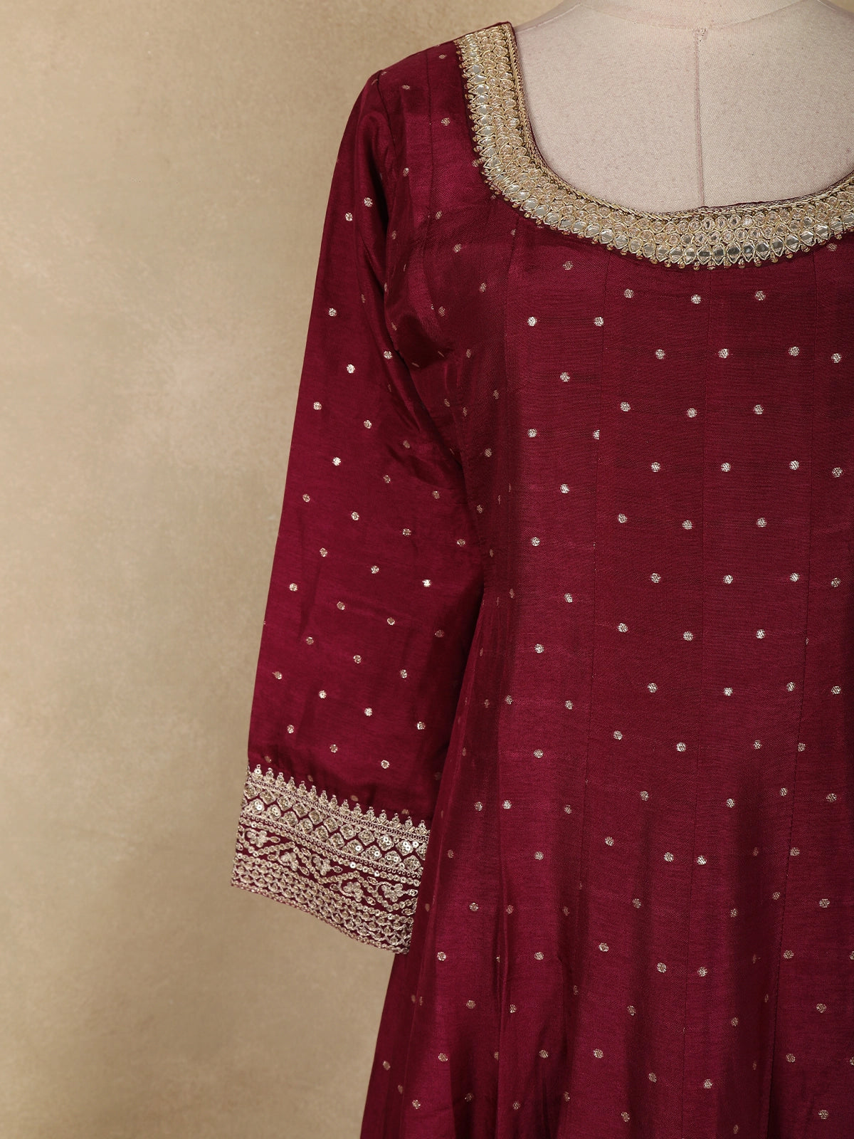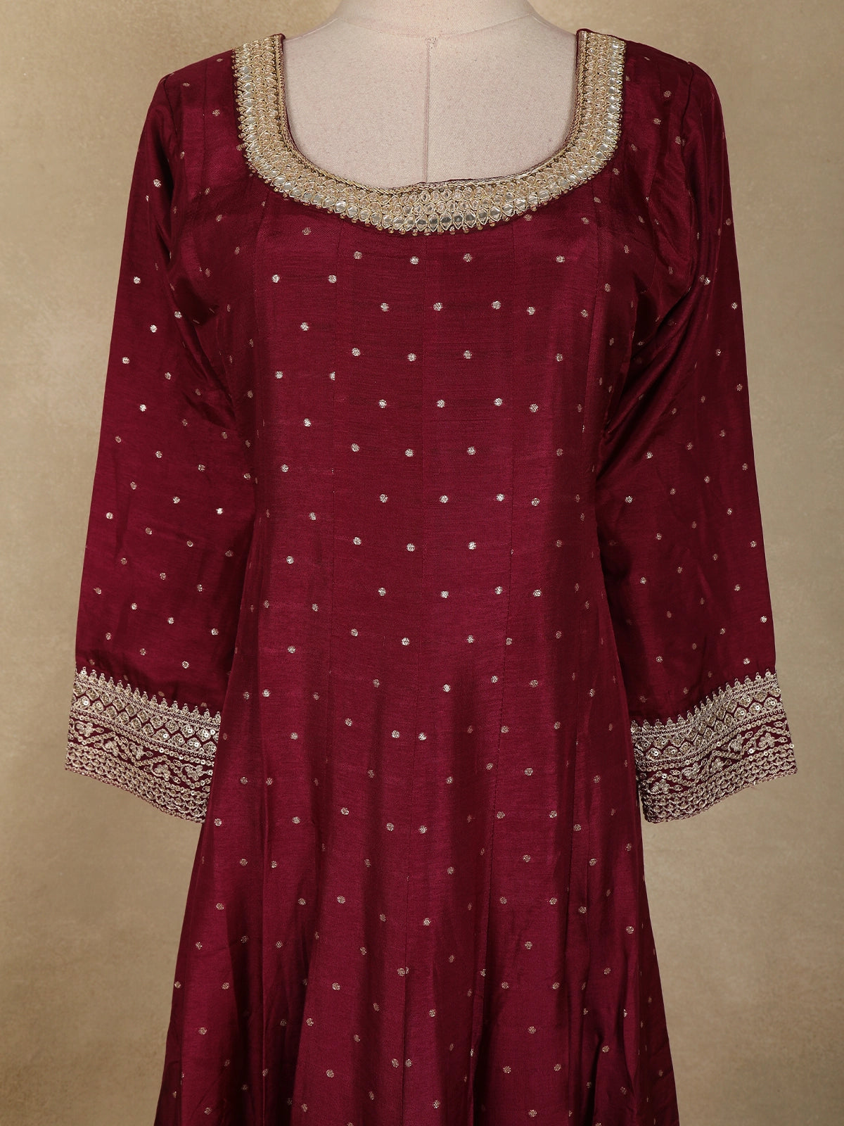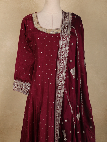 Wine Polka Dot Embroidered Georgette Gown with Dupatta