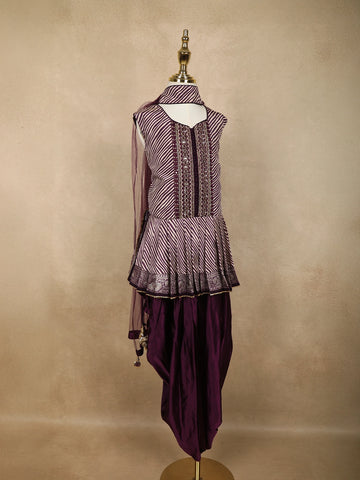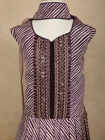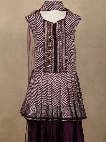 Elegant and traditional with a modern touch, this Wine Purple Embroidered Design Synthetic Kids Patiala Salwar Suit is thoughtfully designed to bring out a graceful festive look for your little one. Crafted in lightweight synthetic fabric, the kurta features a rich wine-purple base highlighted with subtle striped patterns that add depth and visual appeal.
