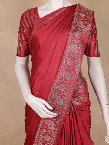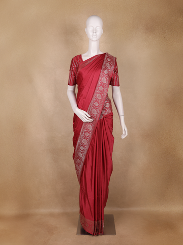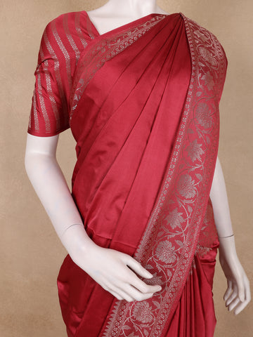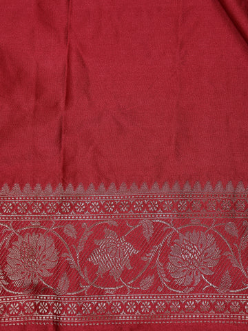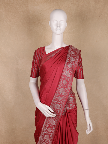 Wine Red Solid Design Semi Banarasi Silk Saree