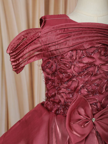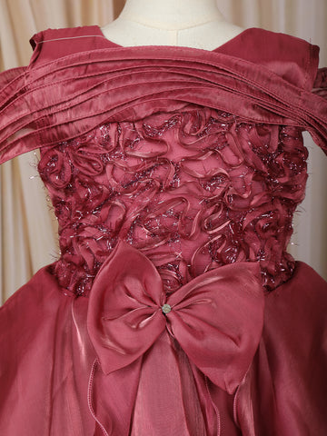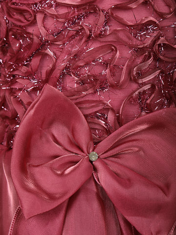 Wine Rose Layered Design Organza Party Frock With Bow Detailing